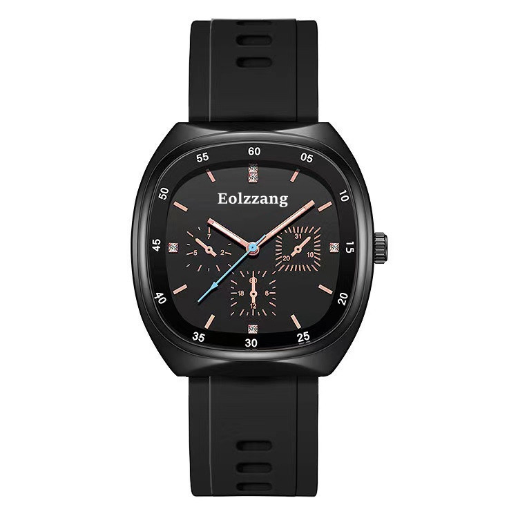 新しいファッショナブルな樽型シリコンバンド、三つ目ブルーハンドメンズ腕時計、多用途でトレンディなファッショナブルな気質、絶妙なクォーツ時計