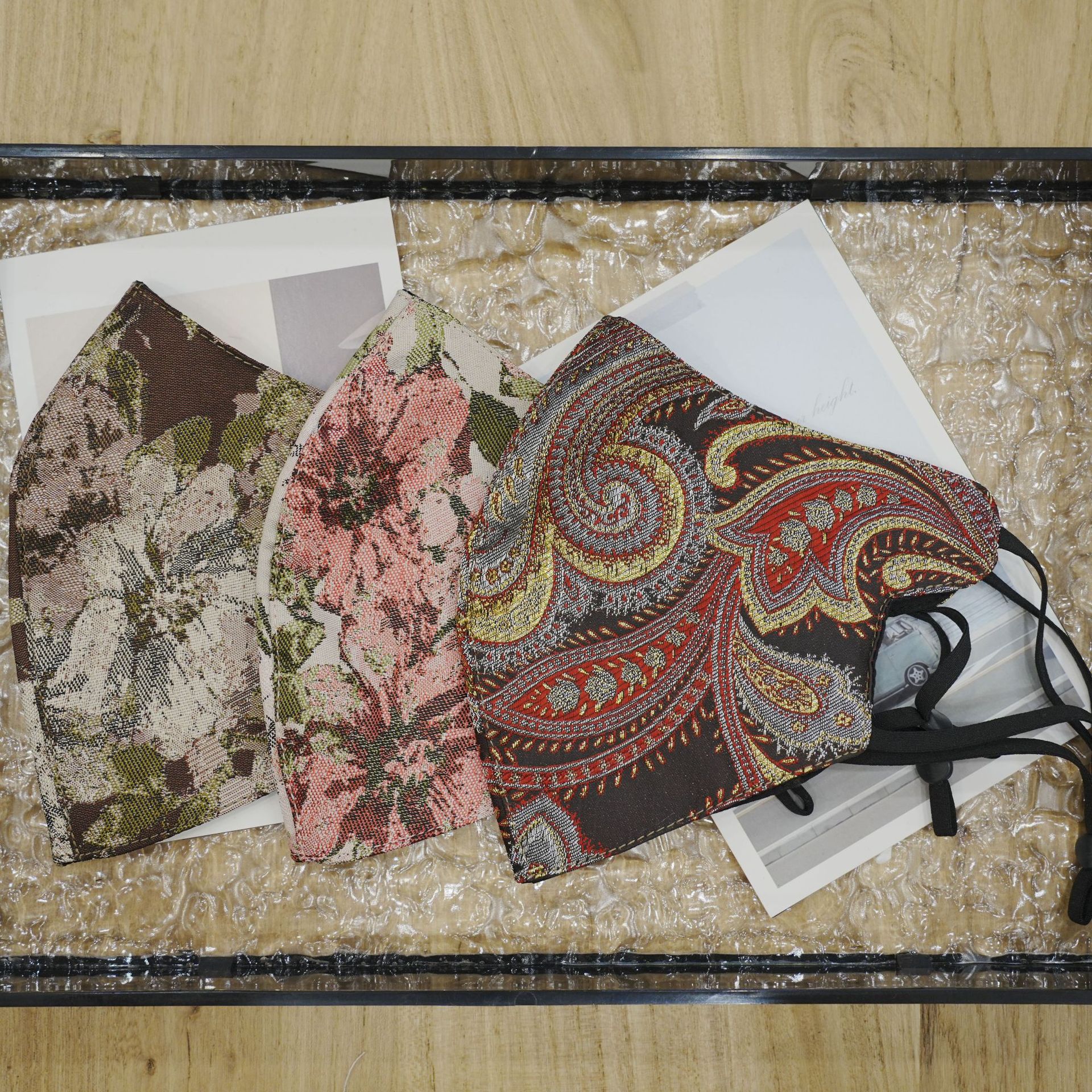 新款加棉加厚国风图腾花纹高端口罩可水洗可调节绸缎复古风面罩