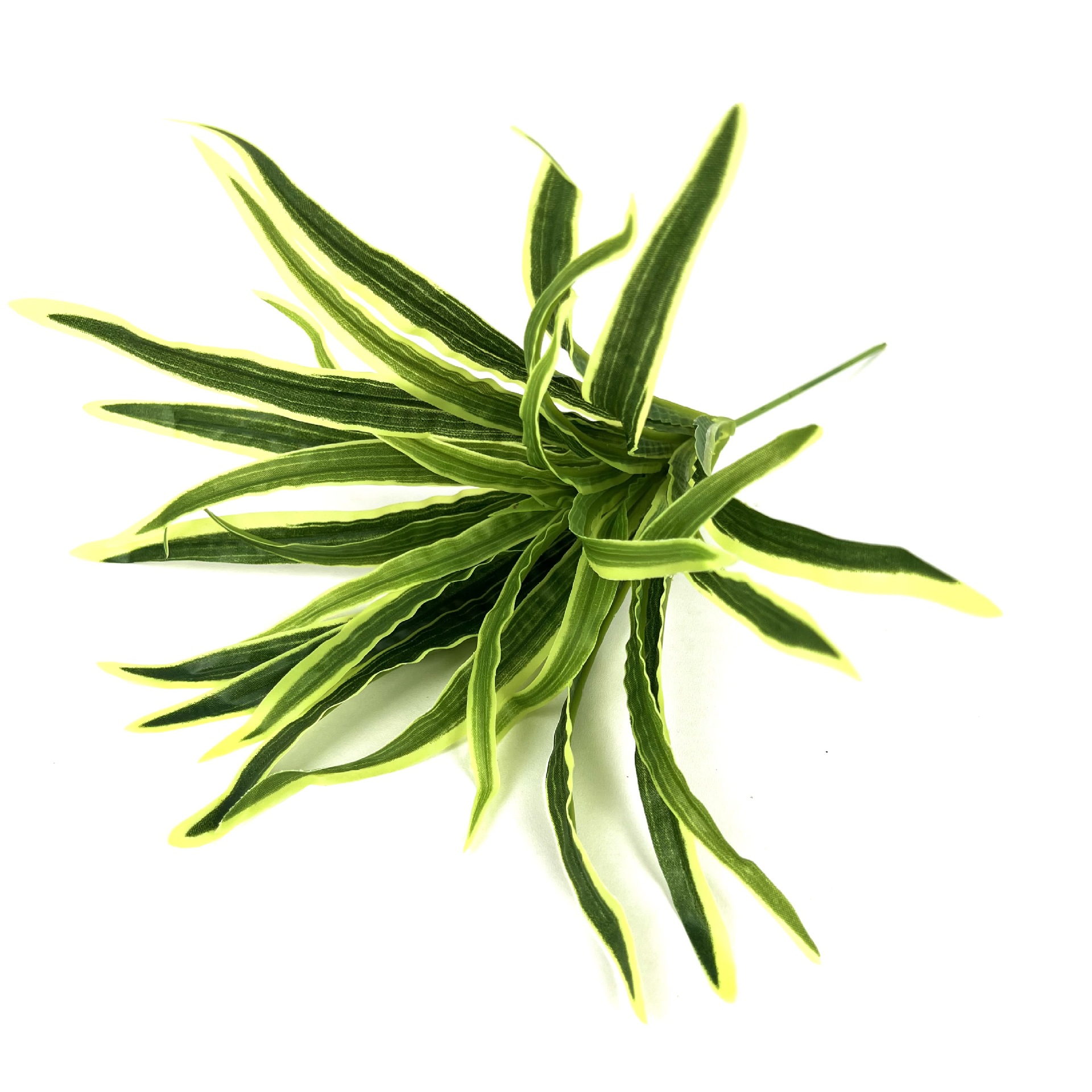 整体高40cm左右,23片叶子分别由小叶7片(长16cm宽1.3cm),中叶8片(长20cm宽1.5cm).大叶8片(23cm宽1.6cm)组成一株.