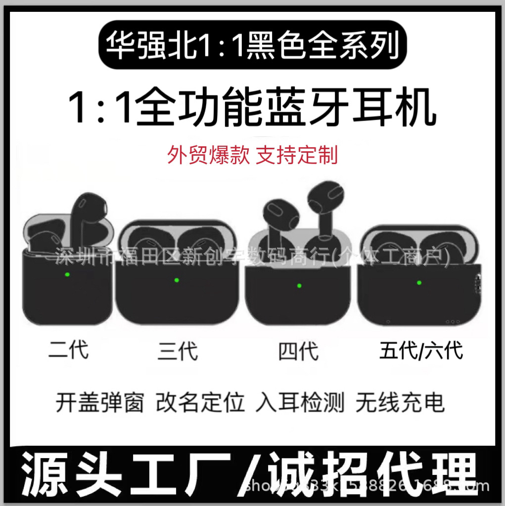 华强北2025新款无线蓝牙耳机二代三代四代五代六代七代全功能降噪