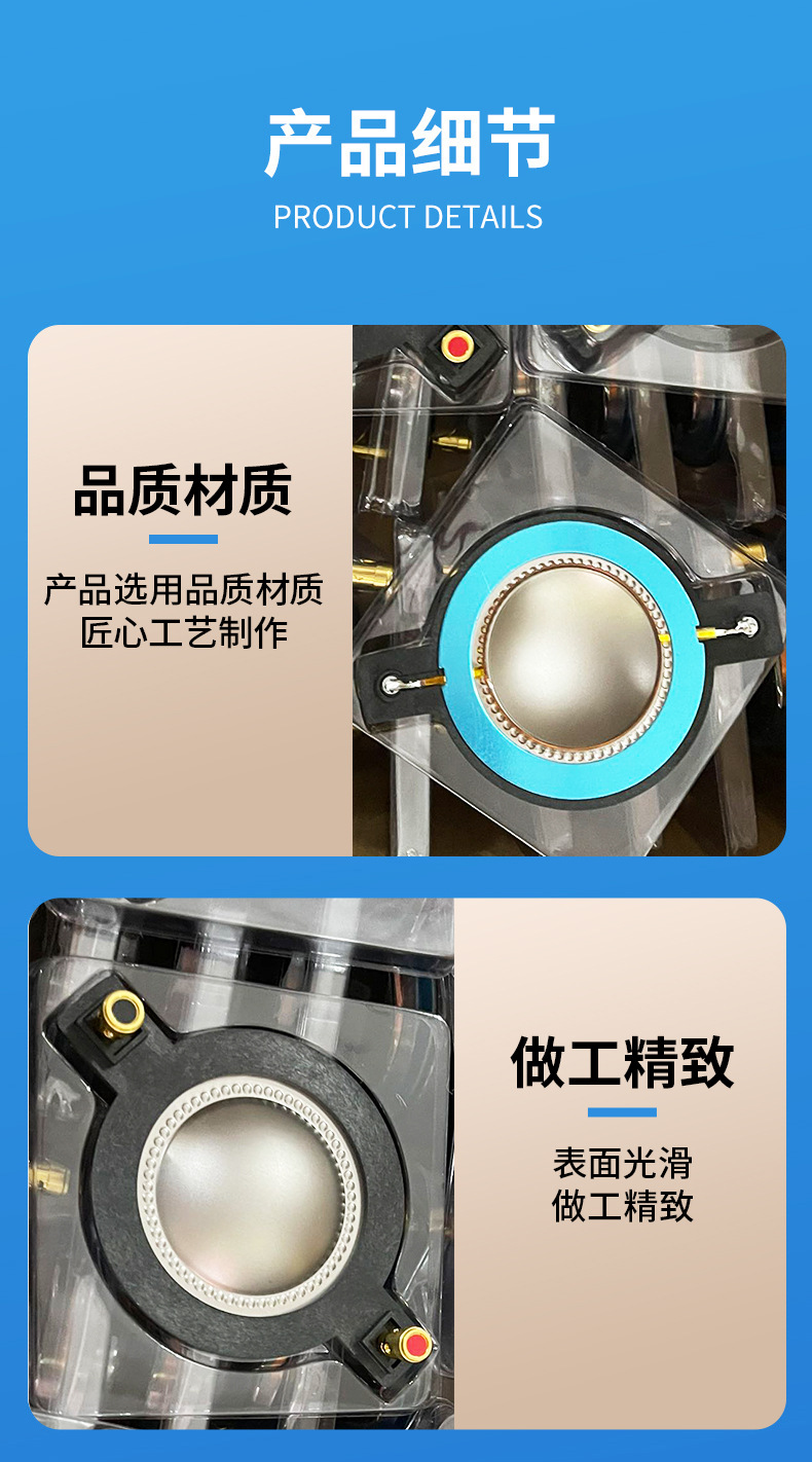 44.4mm ハイボーカルチタン振動板、円柱状ワイヤー44芯スピーカー、高音域ホーン、ハイボーカルドライバーヘッドスピーカー