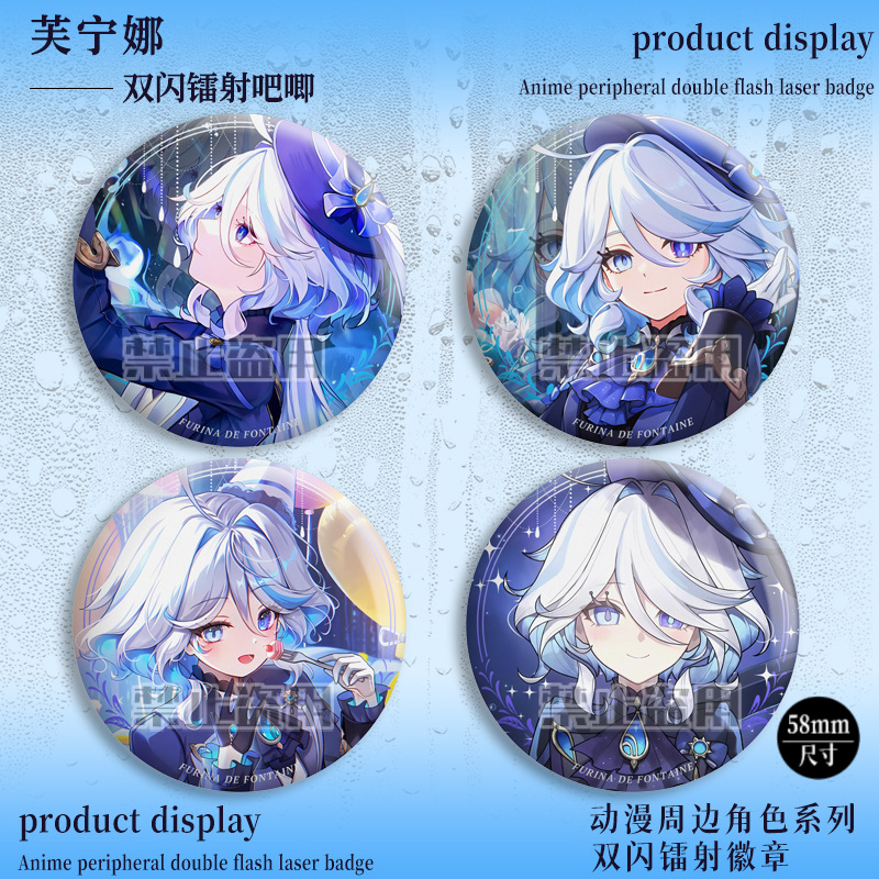 芙寧娜芙カルロス双閃光レーザーバッジアニメ周辺二次元ブリキ谷ブローチ同人バー