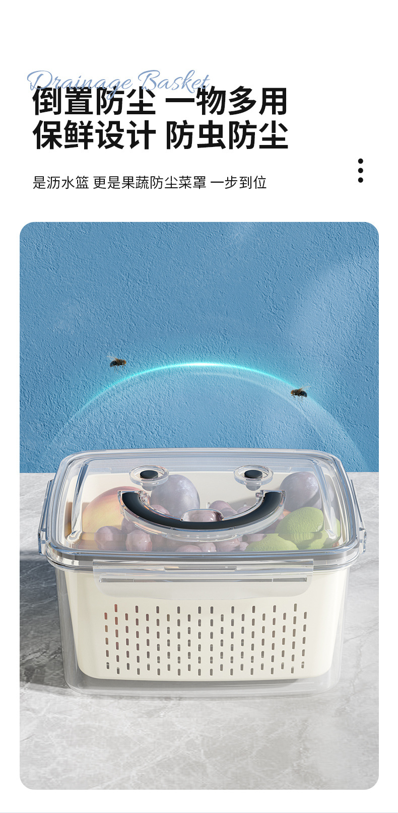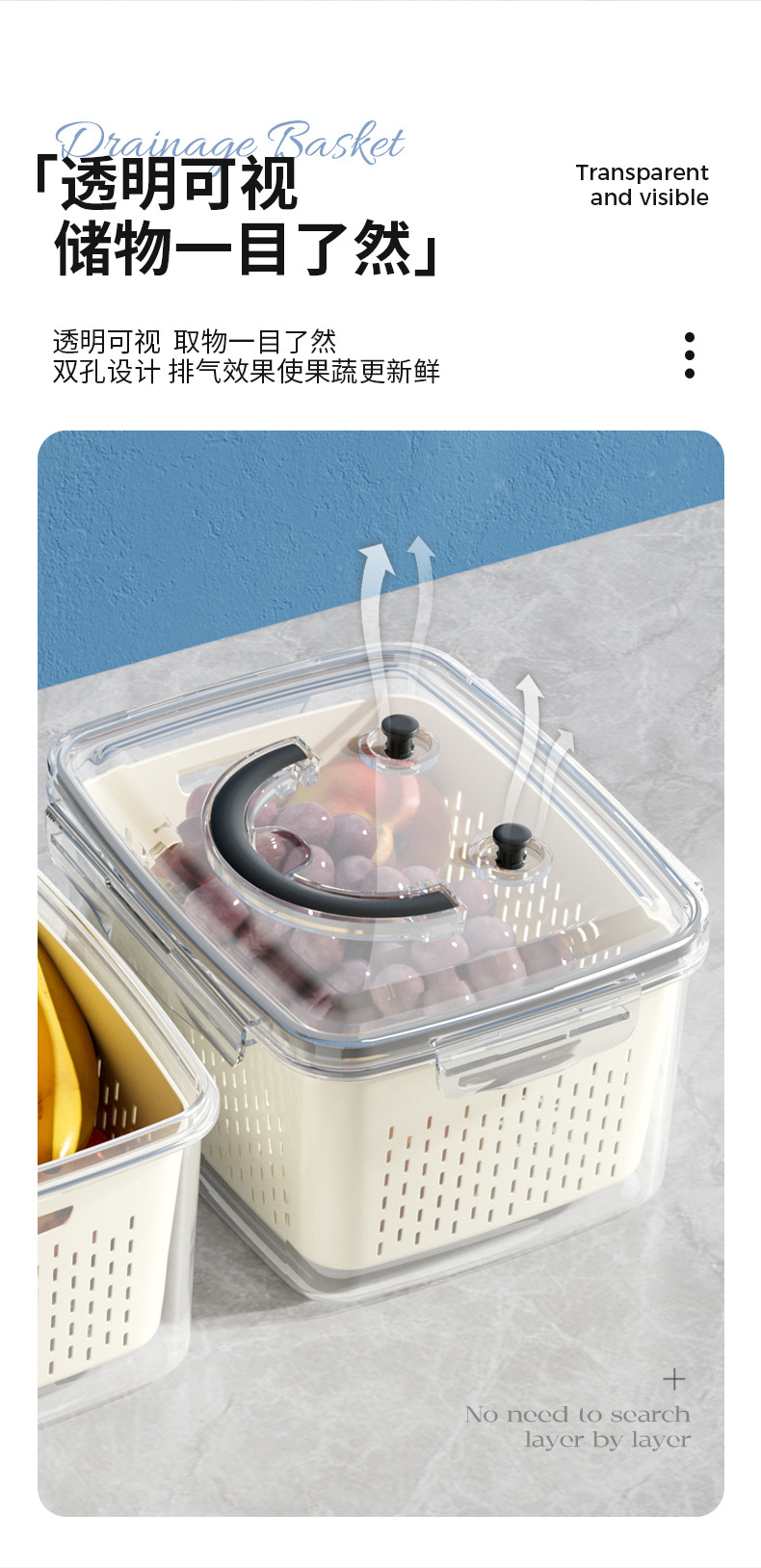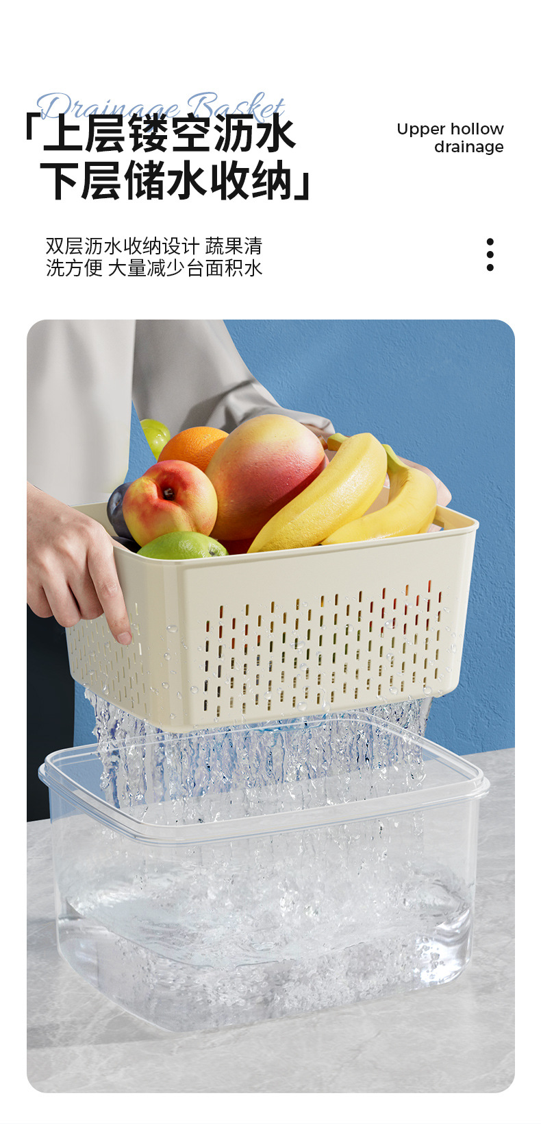 手提げ水たまりバスケット家庭用台所野菜洗浄プラスチック水冷蔵庫整理果物野菜新鮮保持防塵収納ケース