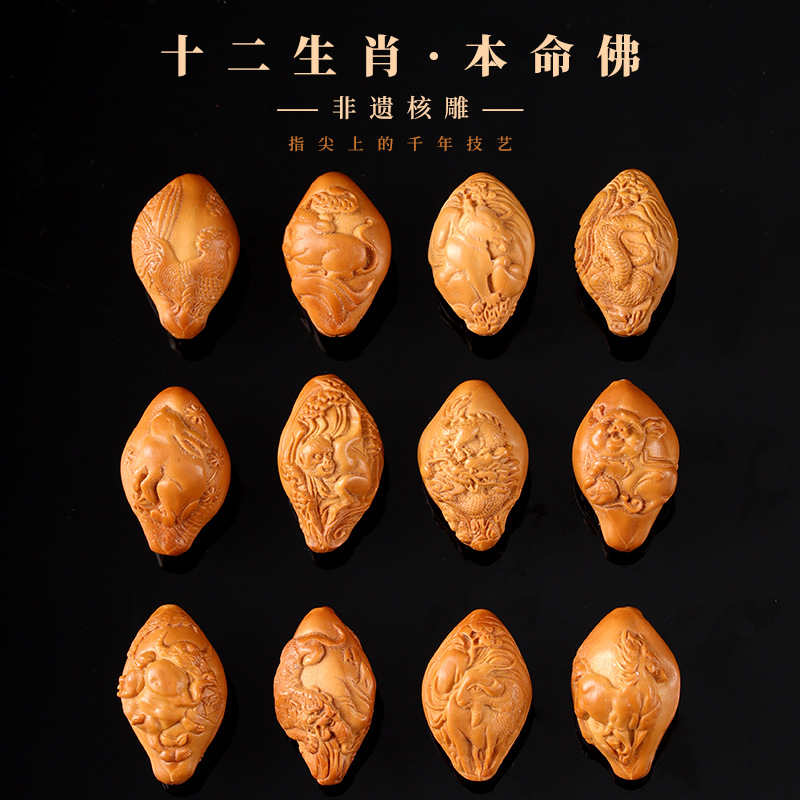 橄榄核手工双面雕刻十二生肖本命佛核雕老油核文玩手串配件配饰批