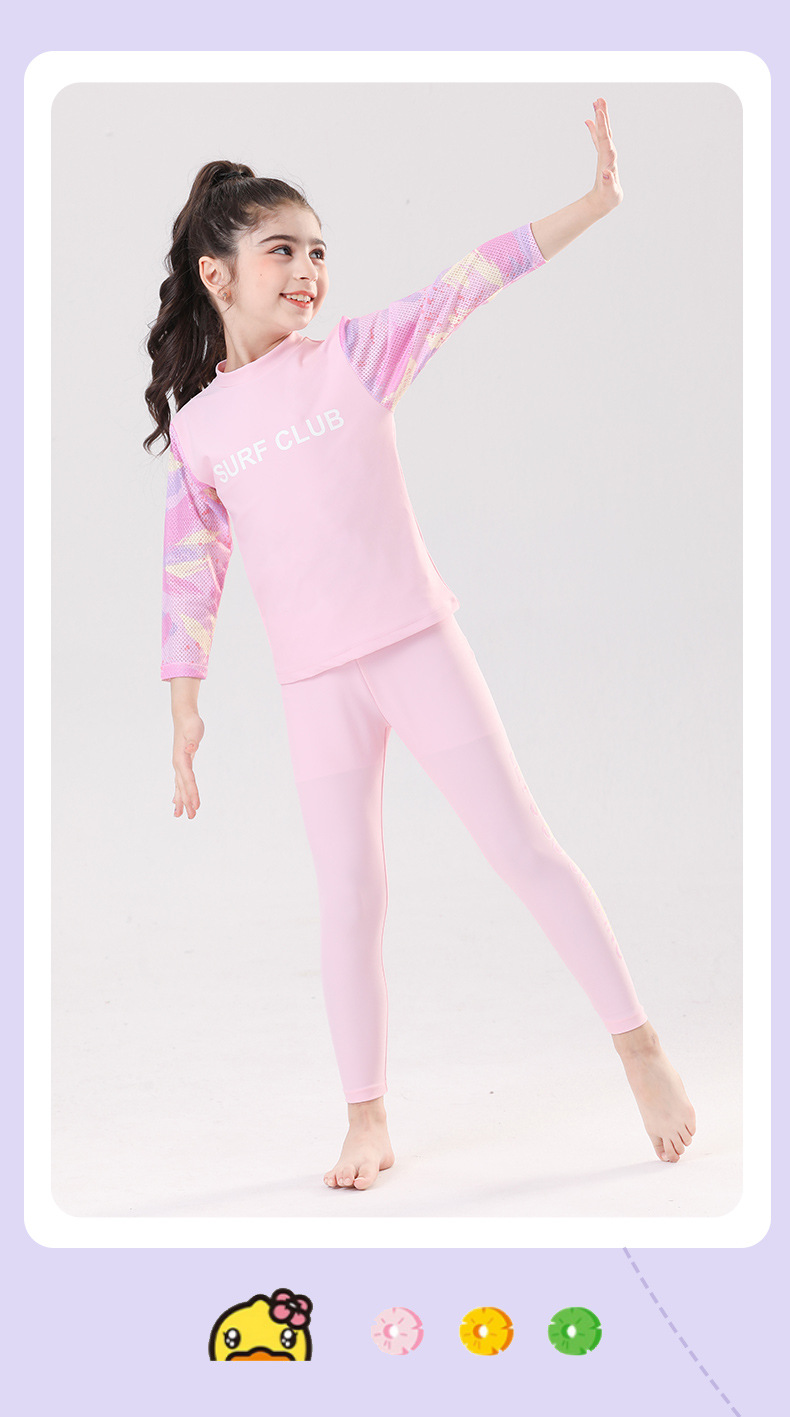 子供の水着の女の子の保温の分体の中で大きい子供の中学生の2025長袖のズボンの温泉の水着の卸売り