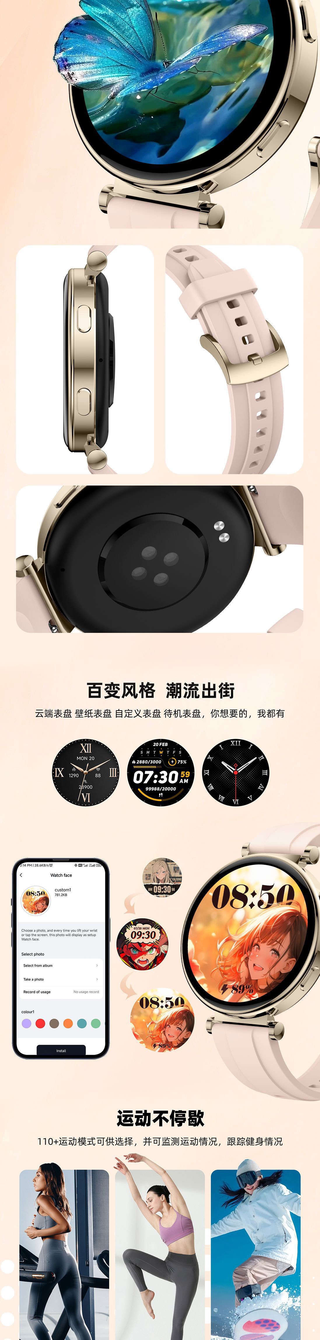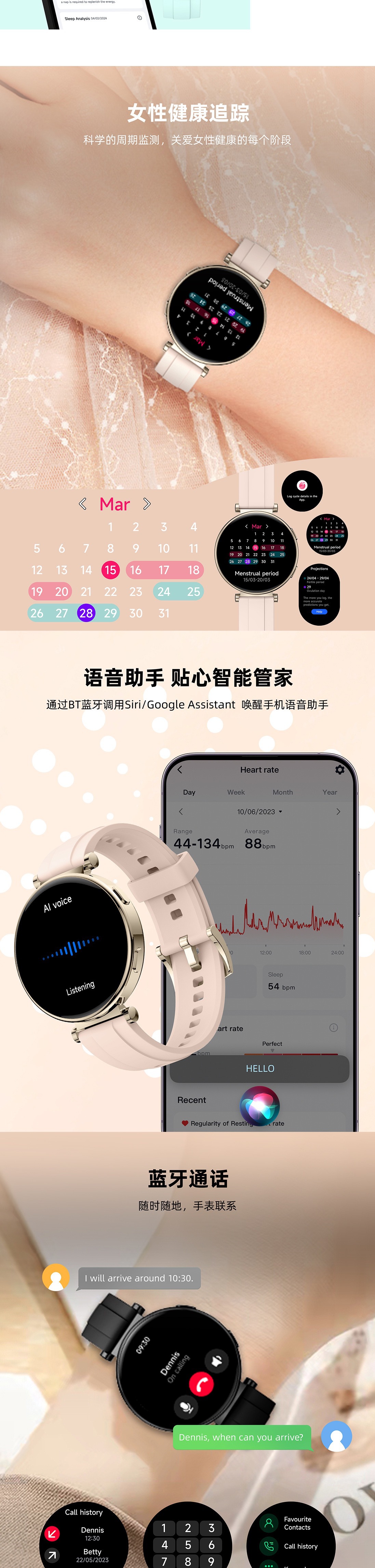 機能 ステップ,心拍数モニタリング,社交娯楽,Bluetooth通話,スマートリマインダー,リモコン自撮り