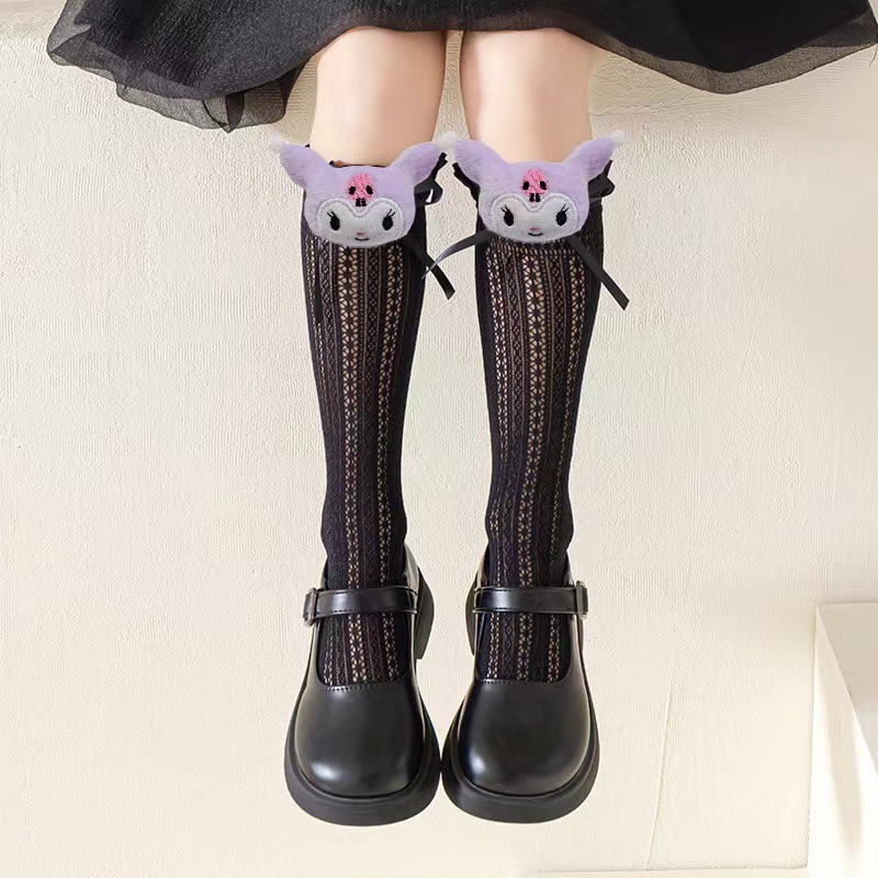 女の子用ロリータソックス 夏用薄手ベビーソックス クロミミドル丈ソックス 日本風通気性のあるふくらはぎソックス 幼児・小学生向け
