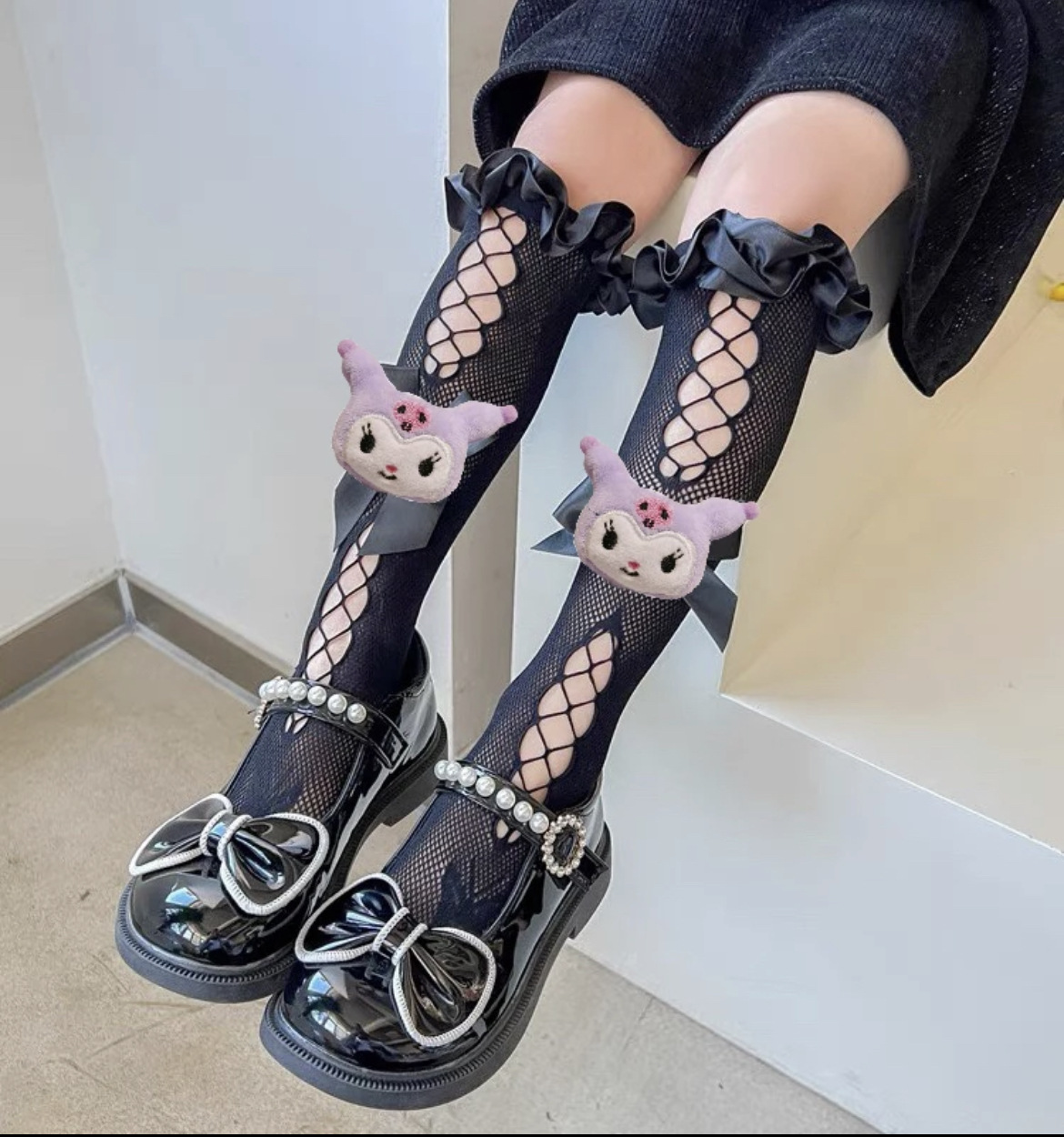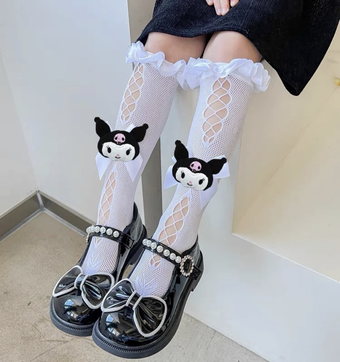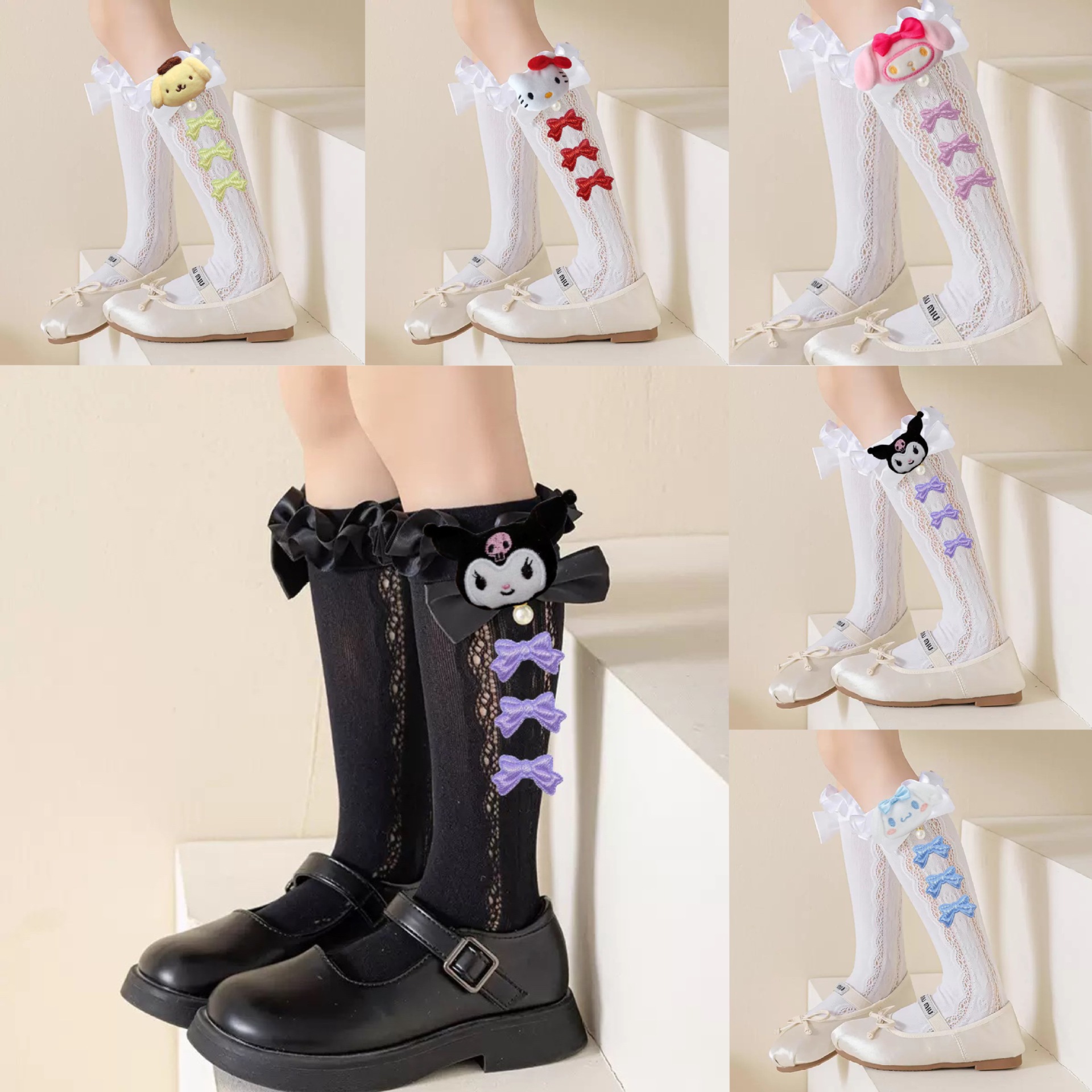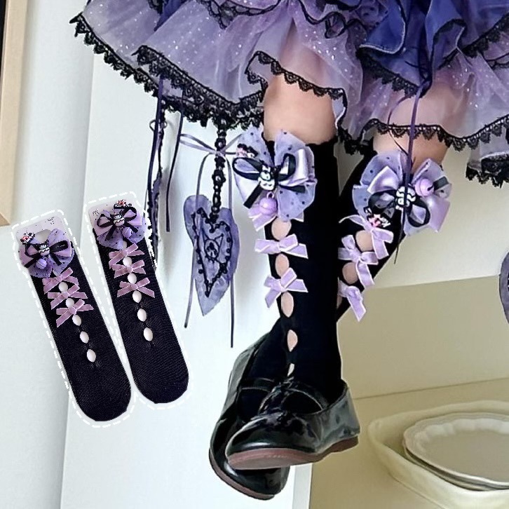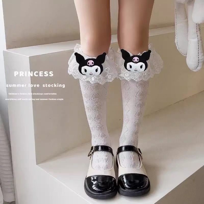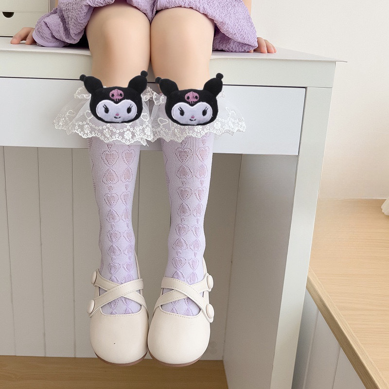 子供ロリータレースソックス女の子夏人形クロミレースリボンソックスクロミミッドカーフソックス