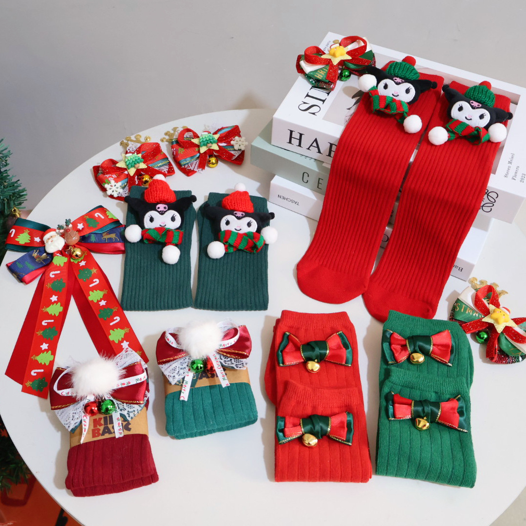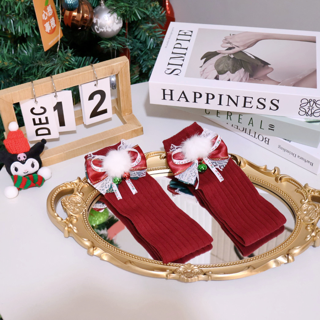 オリジナルのクリスマスのストッキング秋冬の子供のかわいい蝶結びの鈴の山の靴下のロリータのふくらはぎの靴下