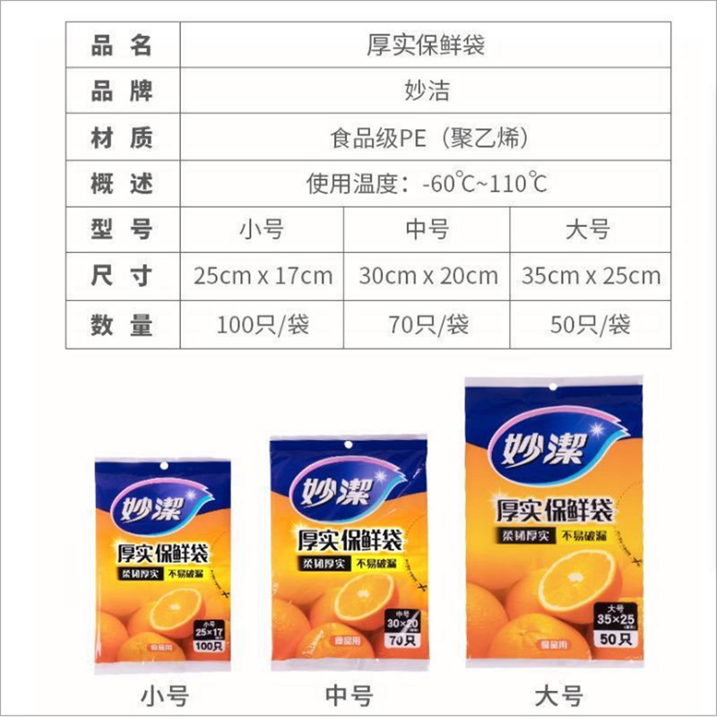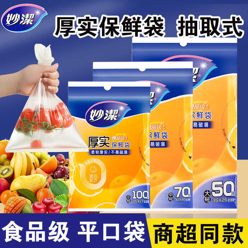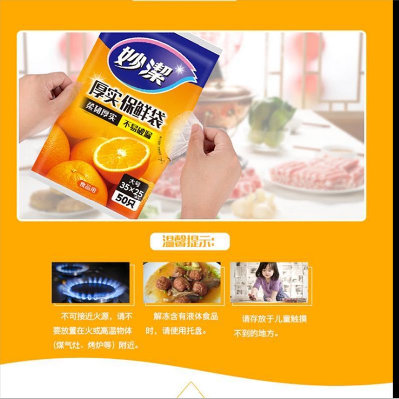 妙潔抽出式鮮度保持袋家庭用厨房密封ビニール袋使い捨てpe経済包装食品袋卸売り