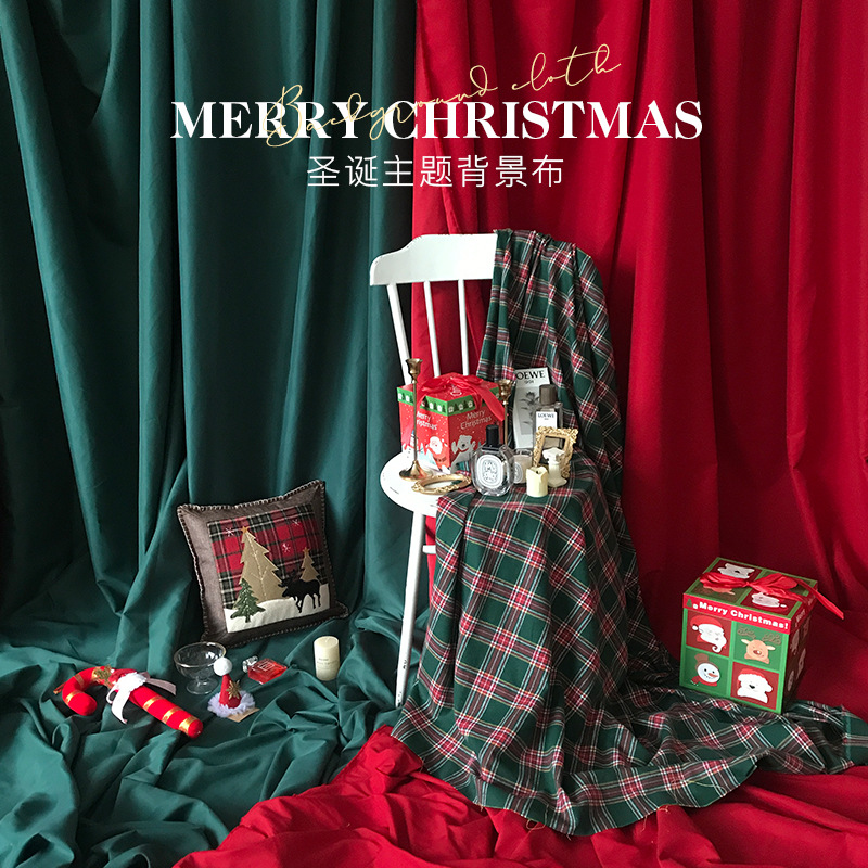 クリスマス写真背景布墨緑酒赤赤赤レトロinsネット赤装飾生放送児童撮影道具