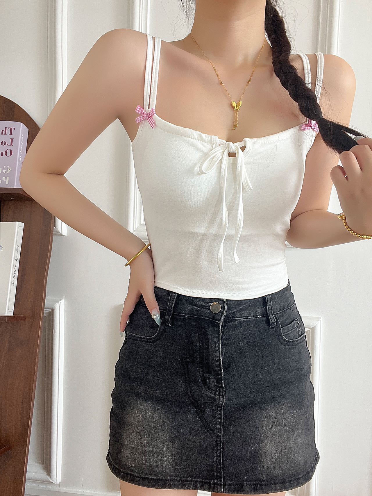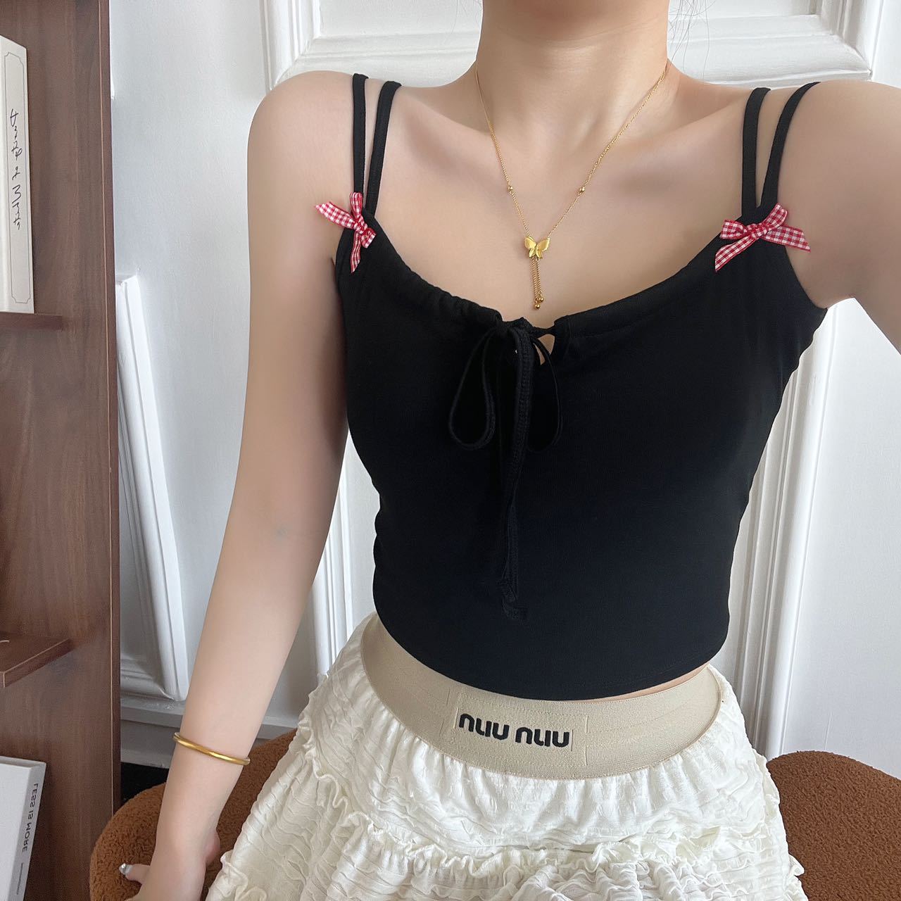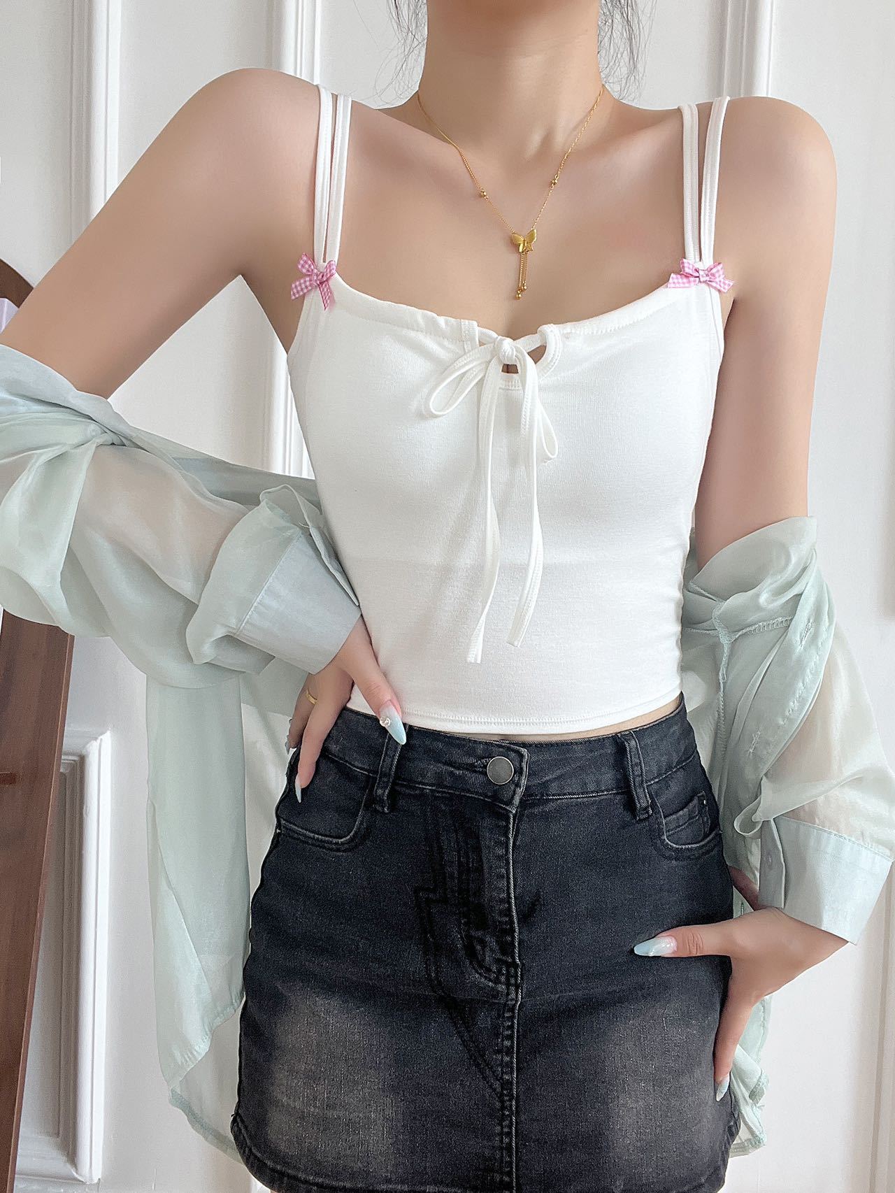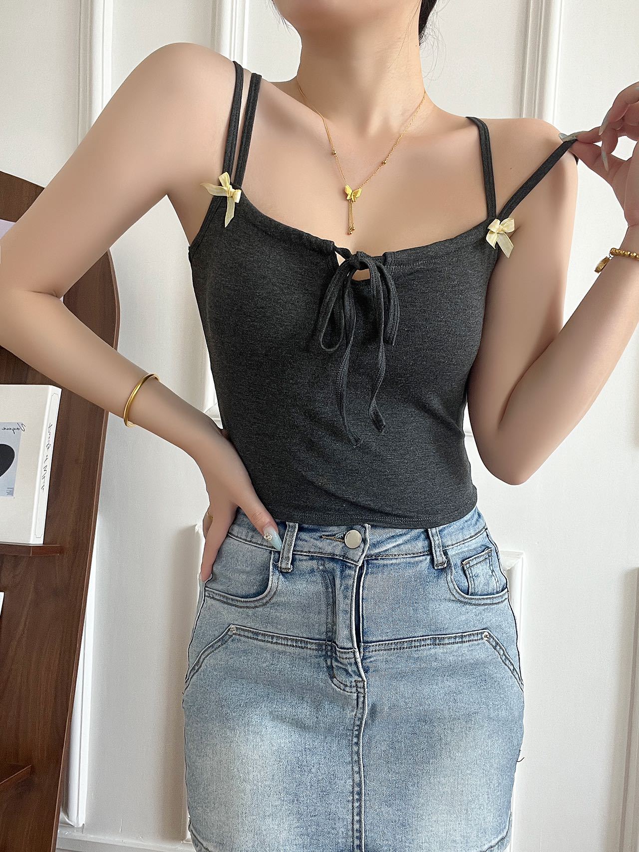夏のデザイン感純欲風固定胸パッド両肩ベルトベスト女性外着デザイン修身ボトムス