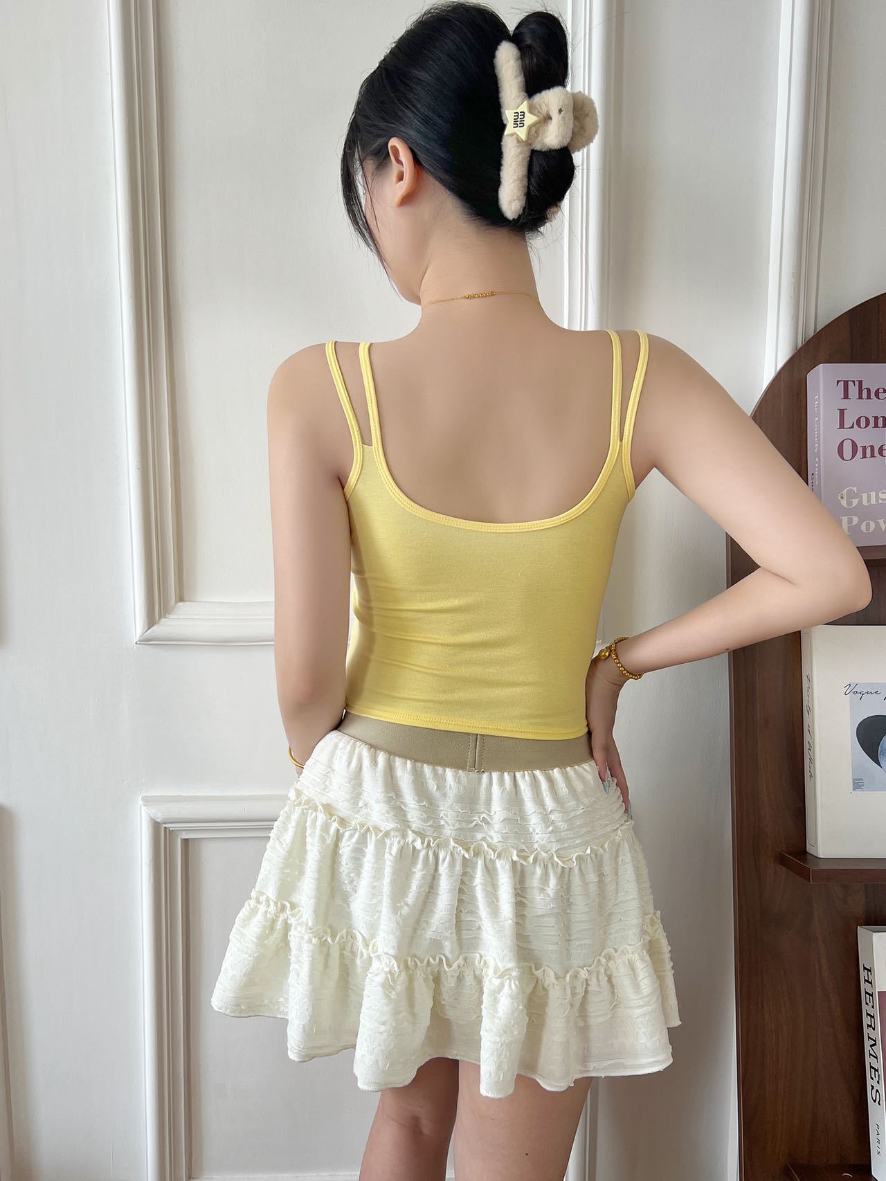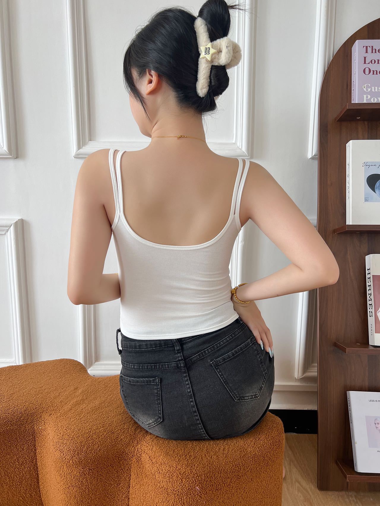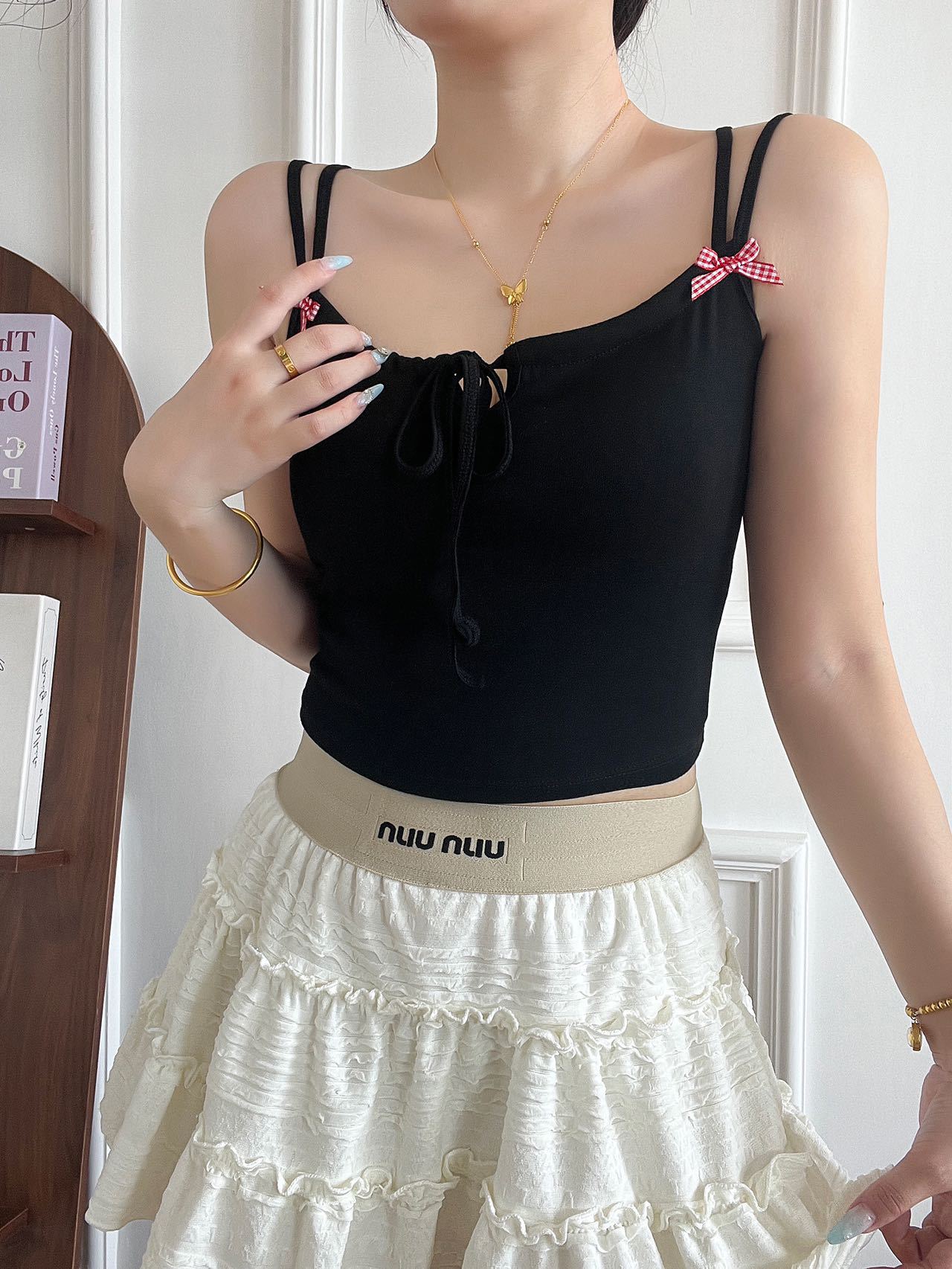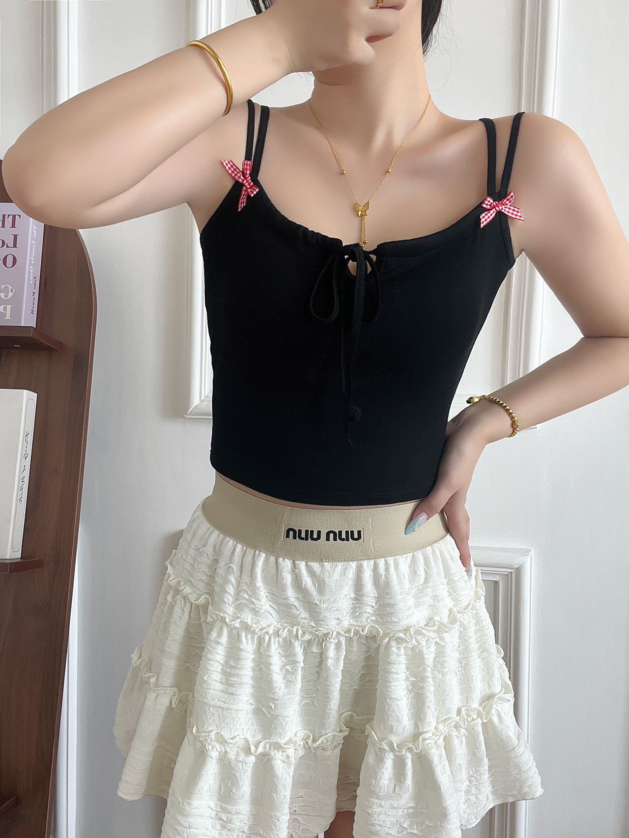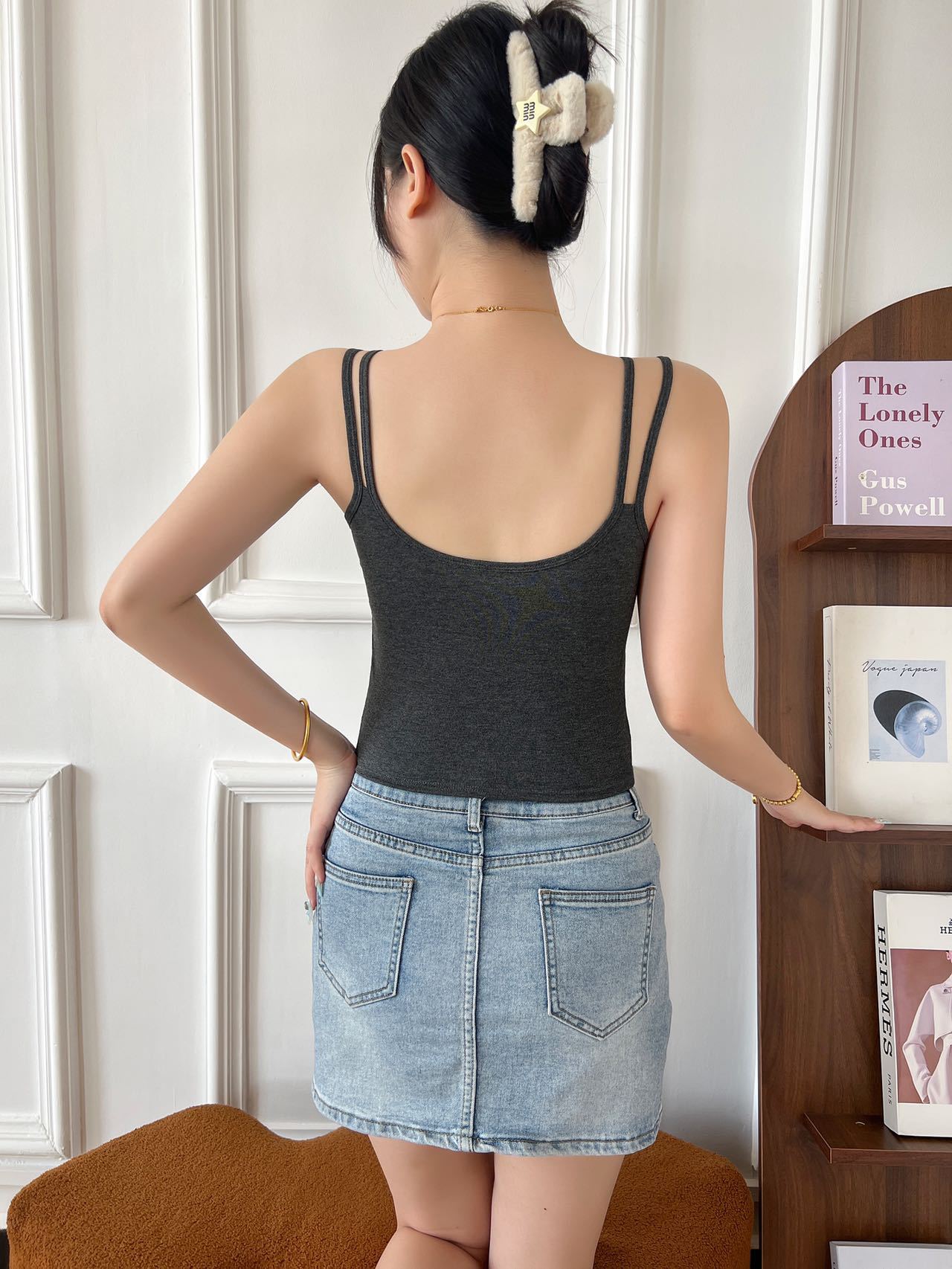 夏のデザイン感純欲風固定胸パッド両肩ベルトベスト女性外着デザイン修身ボトムス