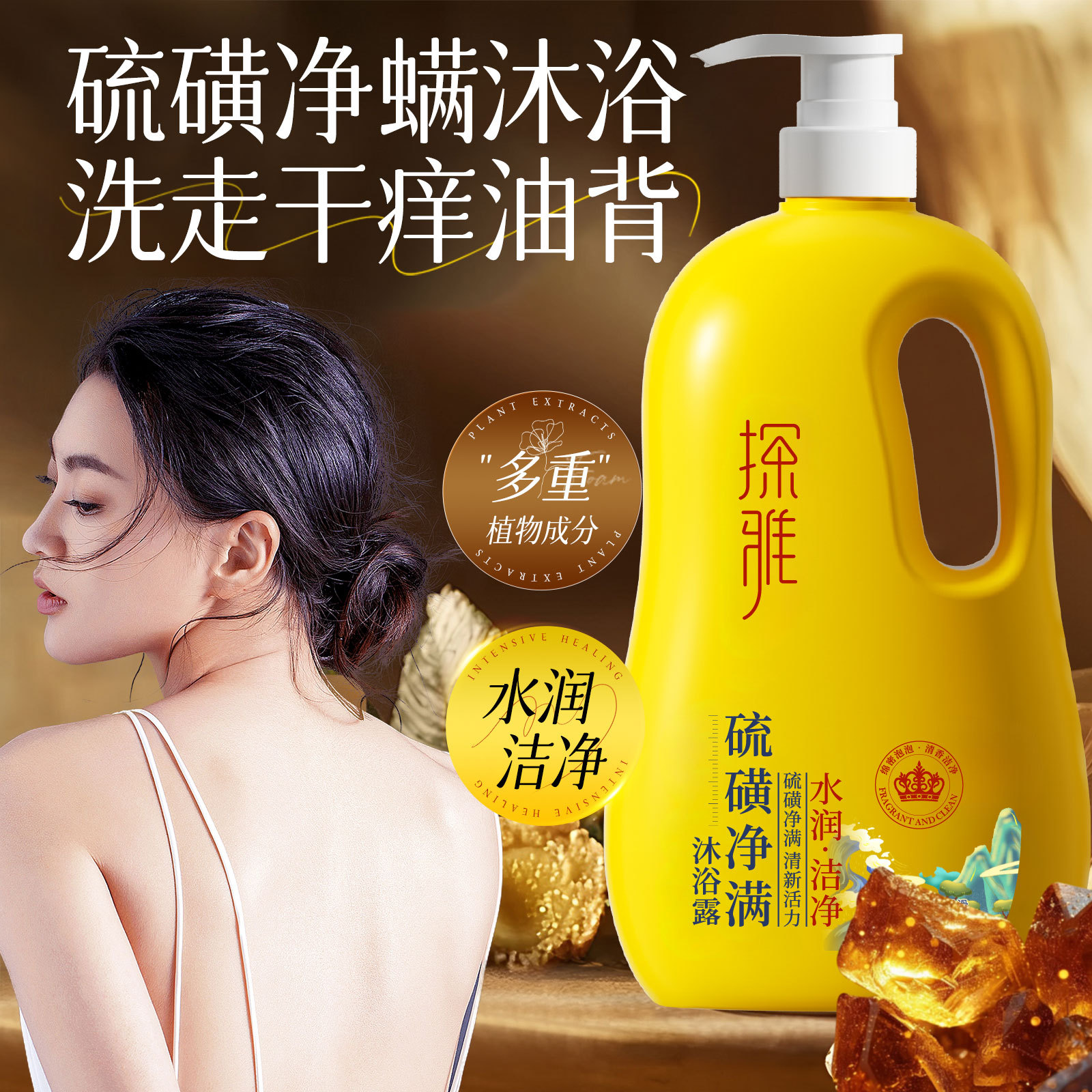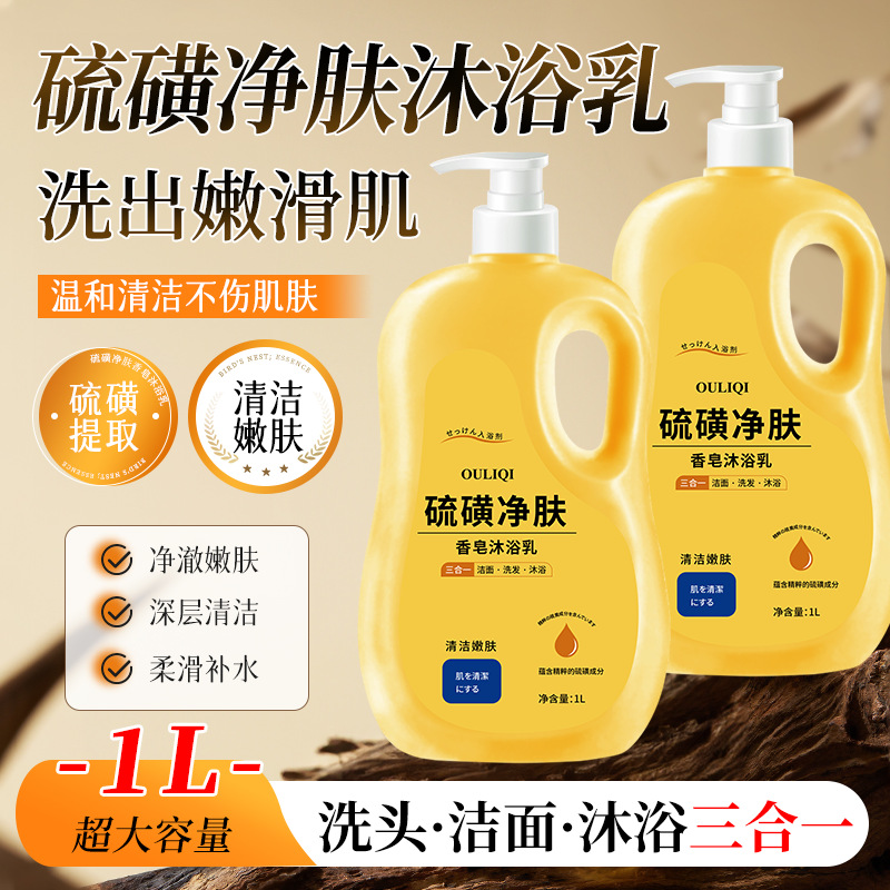 素秀臣氏硫磺洁净沐浴露液体皂除螨止痒嫩肤洗脸洗澡洗头三合一
