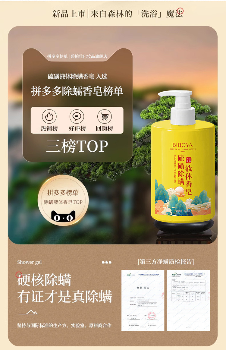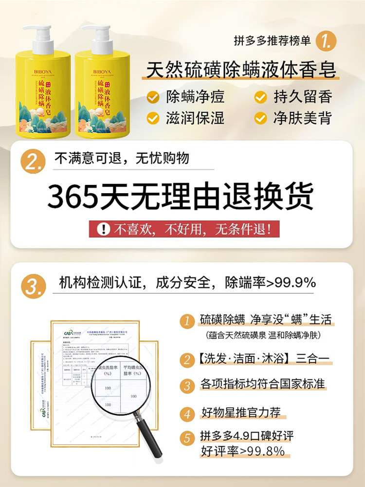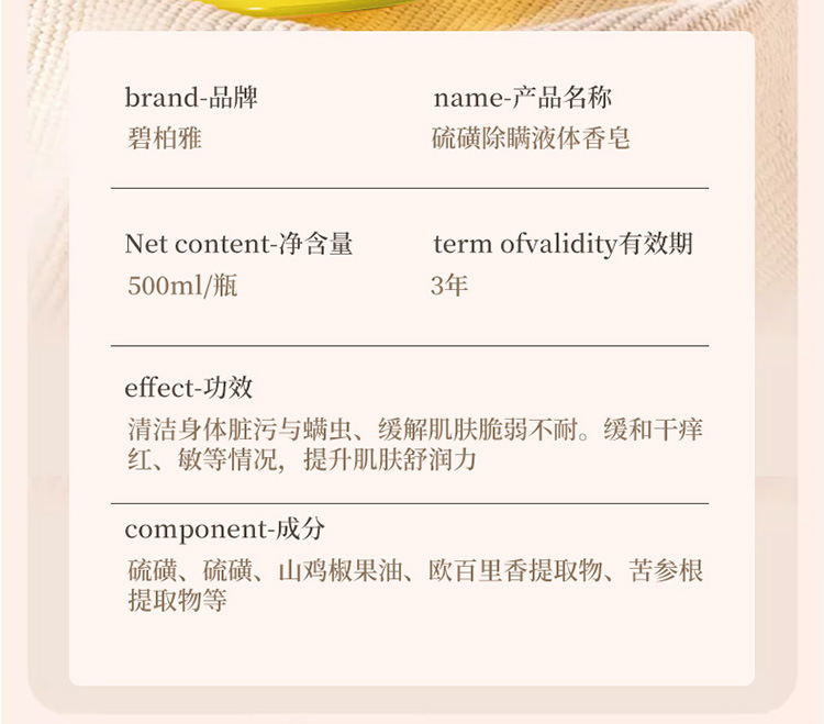 碧柏雅硫黄除ダニ液体石鹸入浴剤清潔去痘大容量入浴剤メーカー直販卸売り