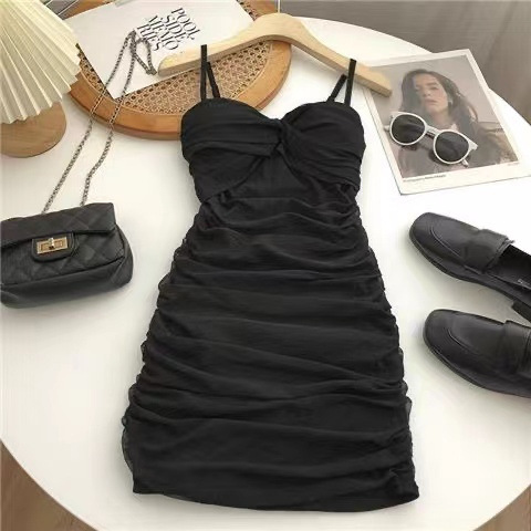 アメリカンスタイルのギャル風セクシーなストラップワンピース女性の夏のデザイン感があります。