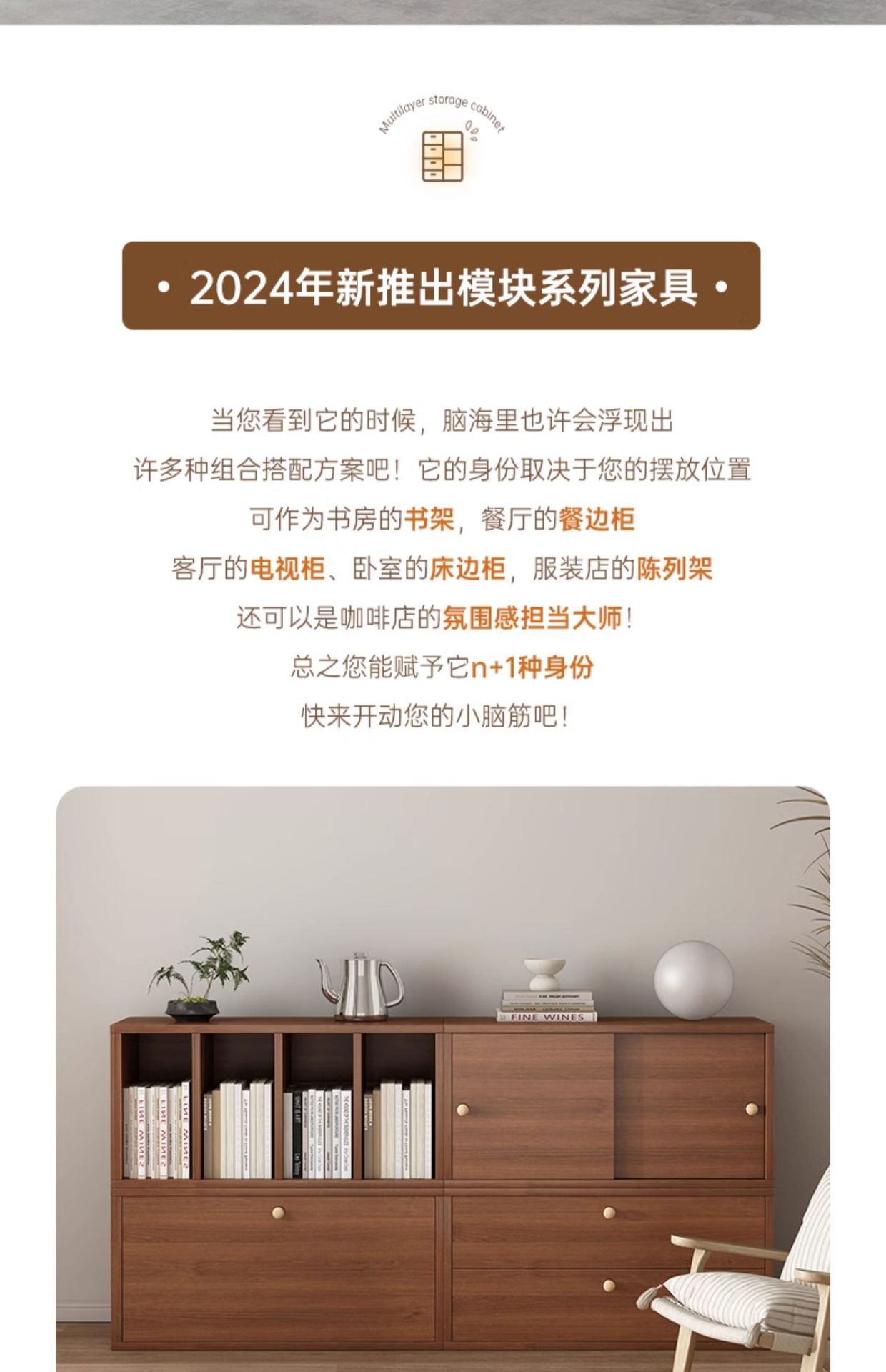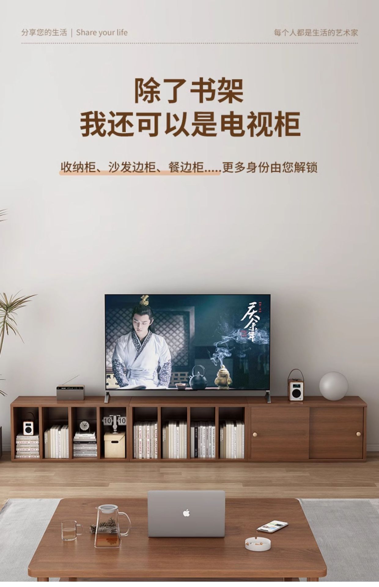 实木书柜沙发边柜一体收纳储物柜模块化组合柜电视柜卧室床尾矮柜
