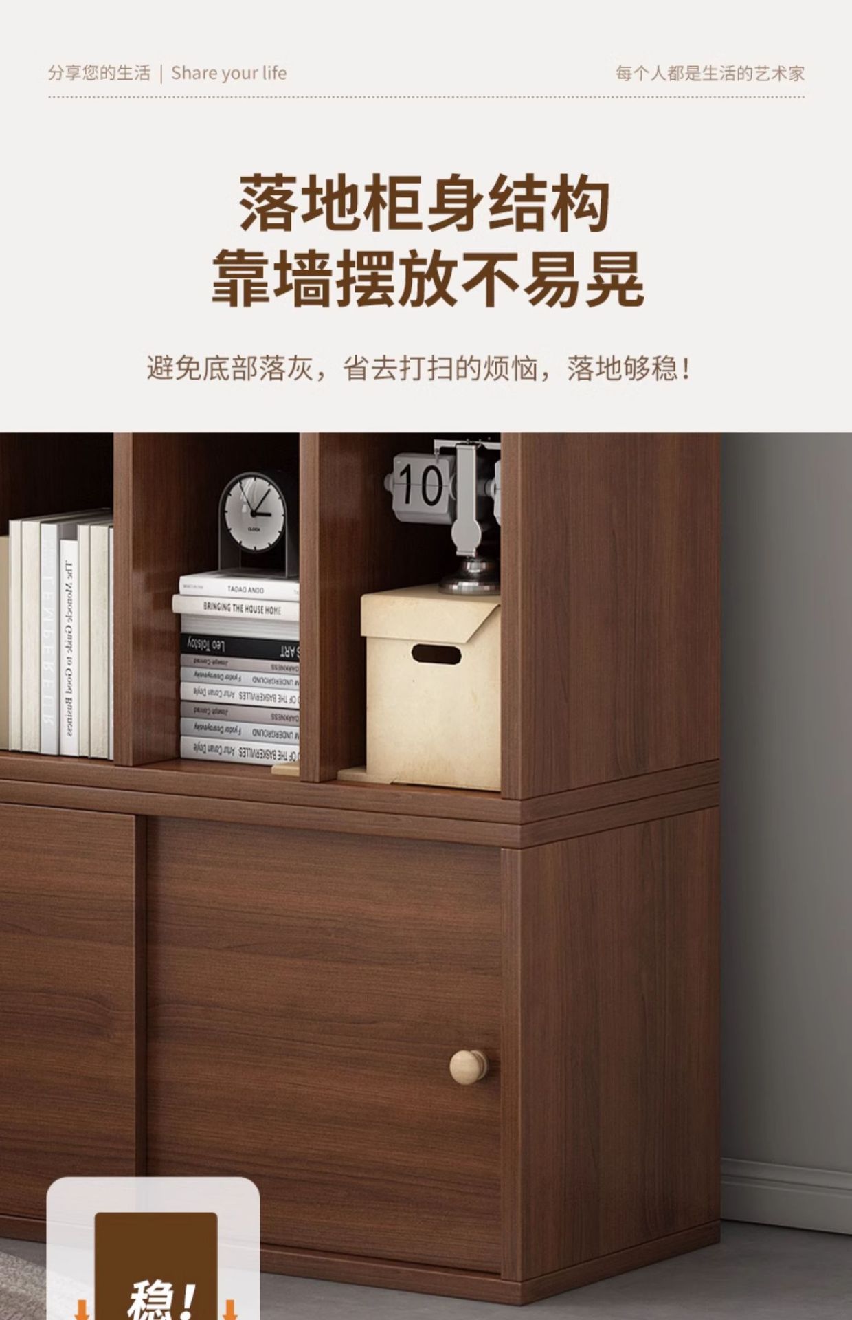 实木书柜储物柜靠墙客厅沙发边柜格子柜家用隔断柜落地置物柜柜子