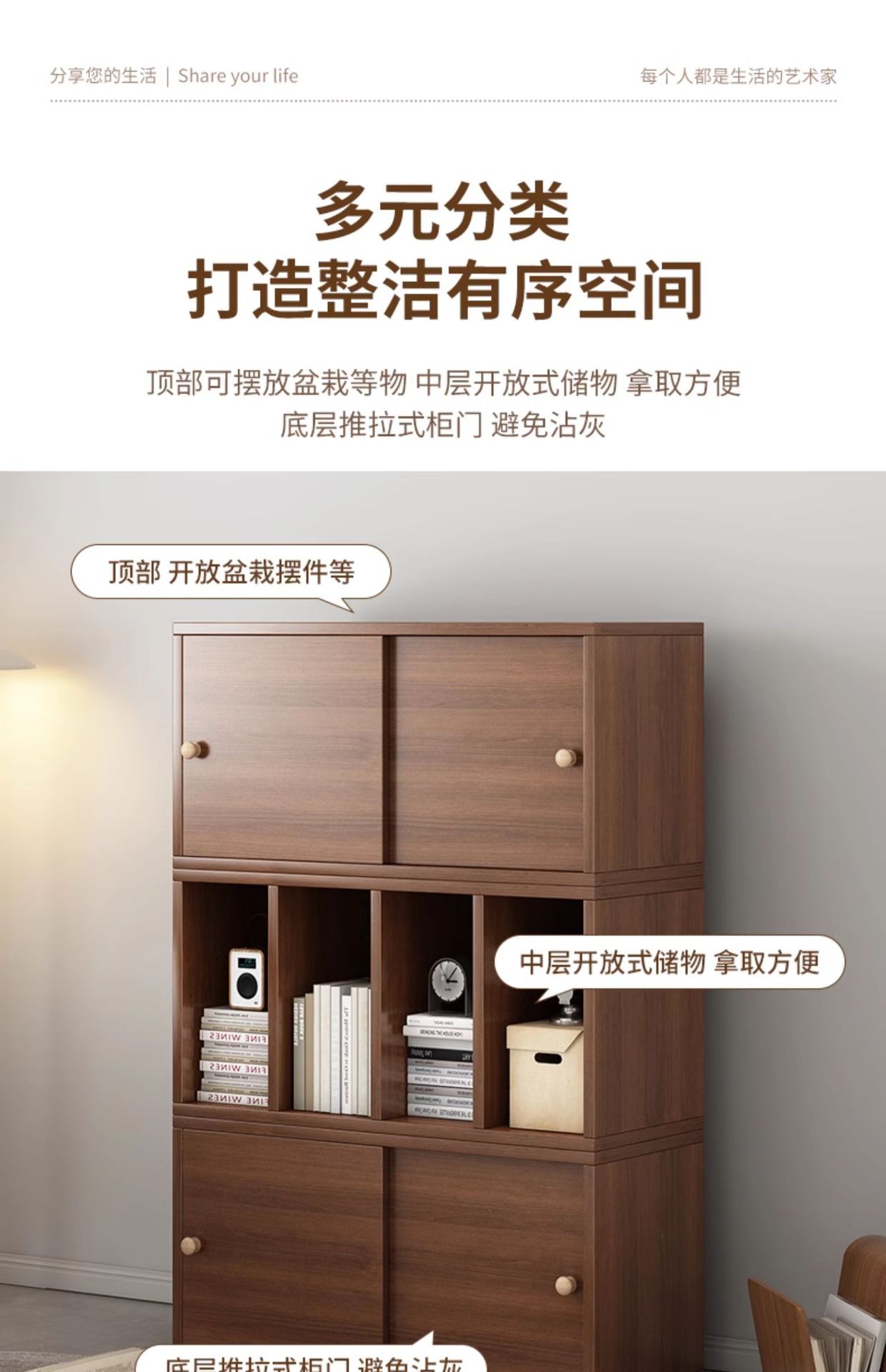 实木自由组合柜极简日式多功能置物柜家用书柜客厅收纳防尘储物柜
