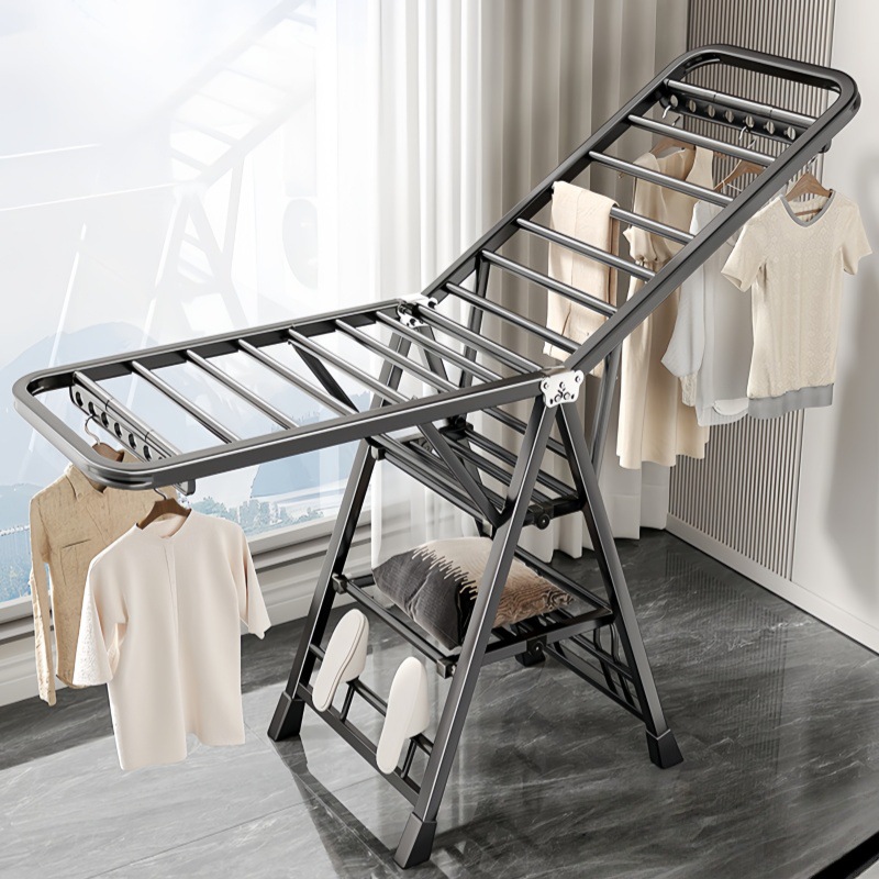 折りたたみハンガー床置き室内家庭用ベランダ寝室ステンレス室外冷伸縮棒式干し布団神器