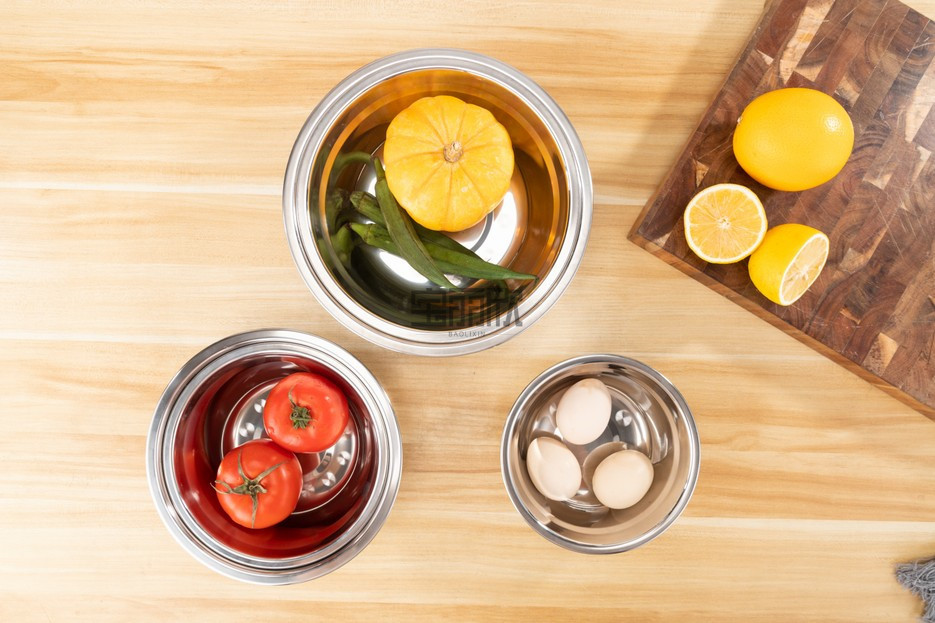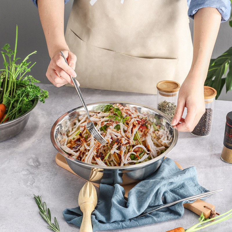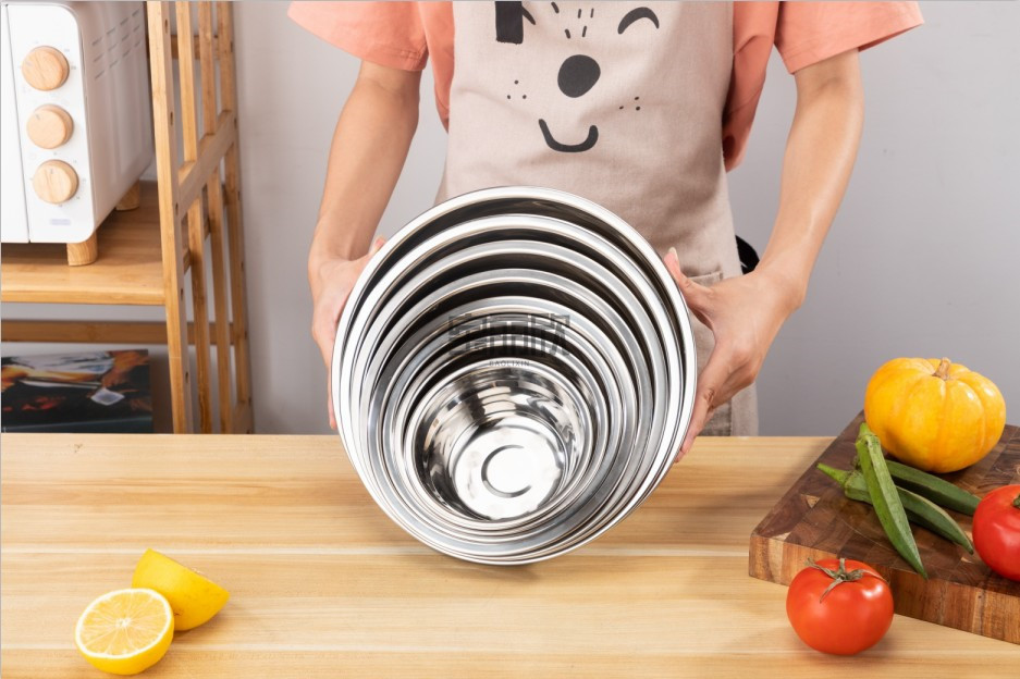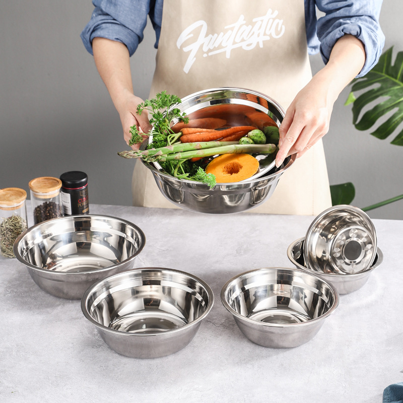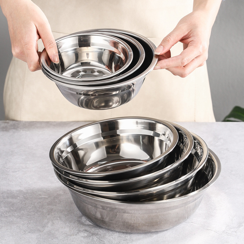 メーカー直接供給肥厚ステンレス鋼洗面器非磁性逆調味料シリンダーベーキングエッグビーター洗面器深化野菜洗面器卸売