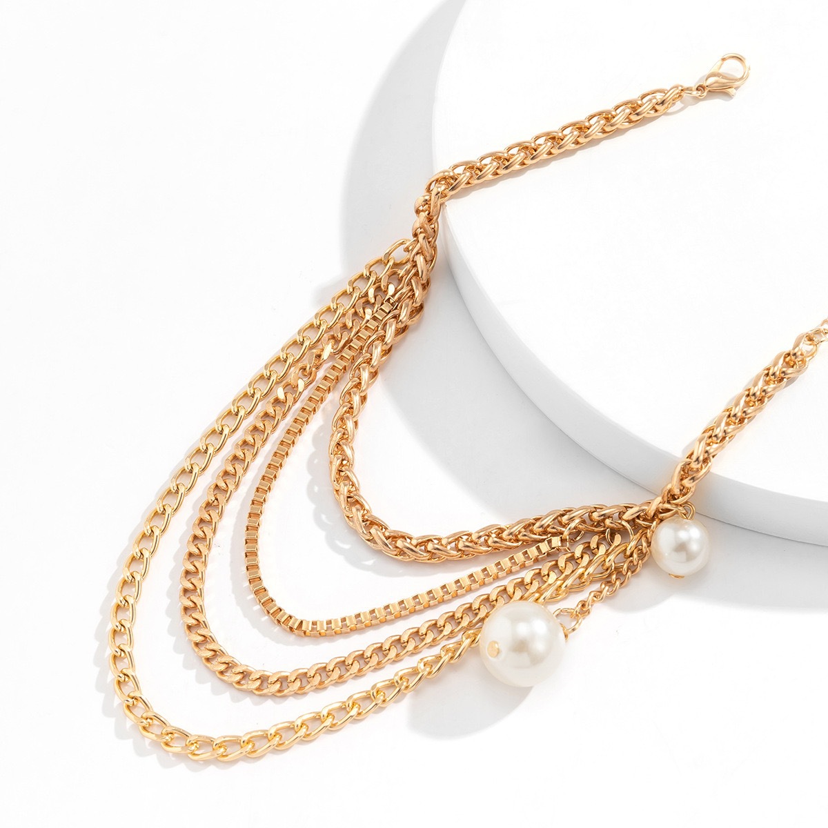 ヨーロッパとアメリカンスタイルの女性用多層タッセルヒップホップアンクレット、誇張された個性、幾何学的な金属チェーン、靴のチェーン、雪の柔らかいジュエリー
