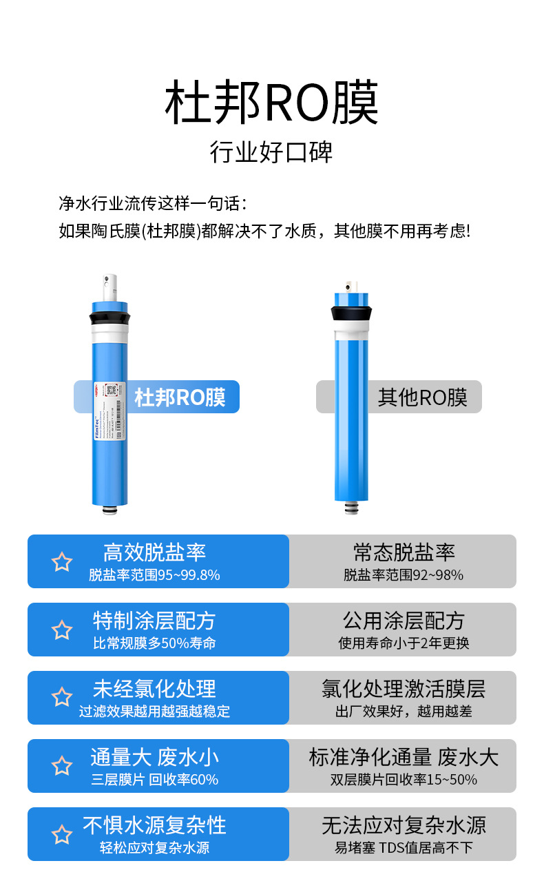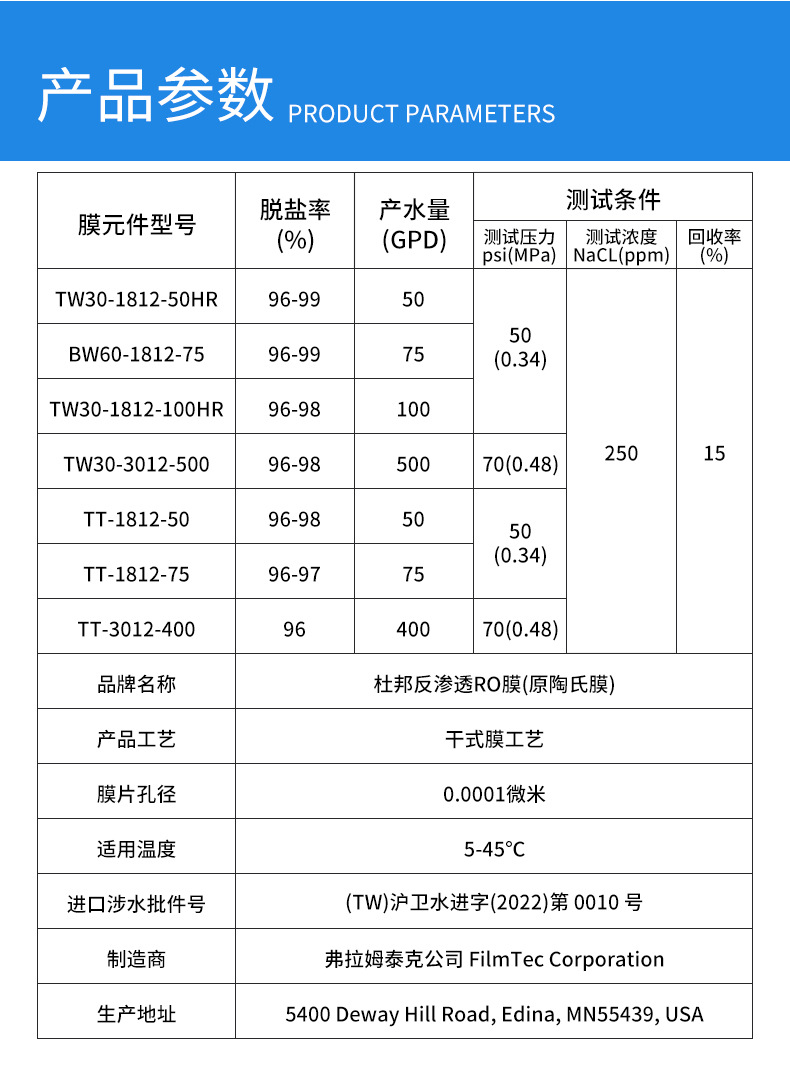 现货批发美国杜邦陶氏RO膜净水器纯水机滤芯配件家用原装反渗透膜