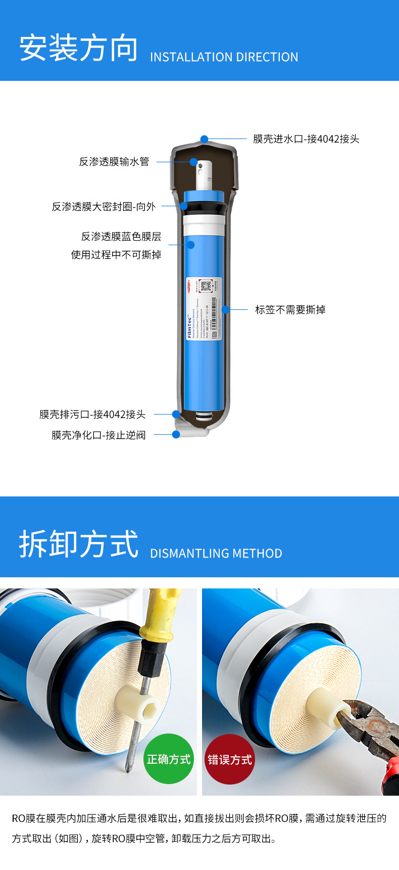 本物のアメリカ製デュポン・ダウRO逆浸透膜家庭用キッチン浄水器純水機フィルターエレメント汎用アクセサリー