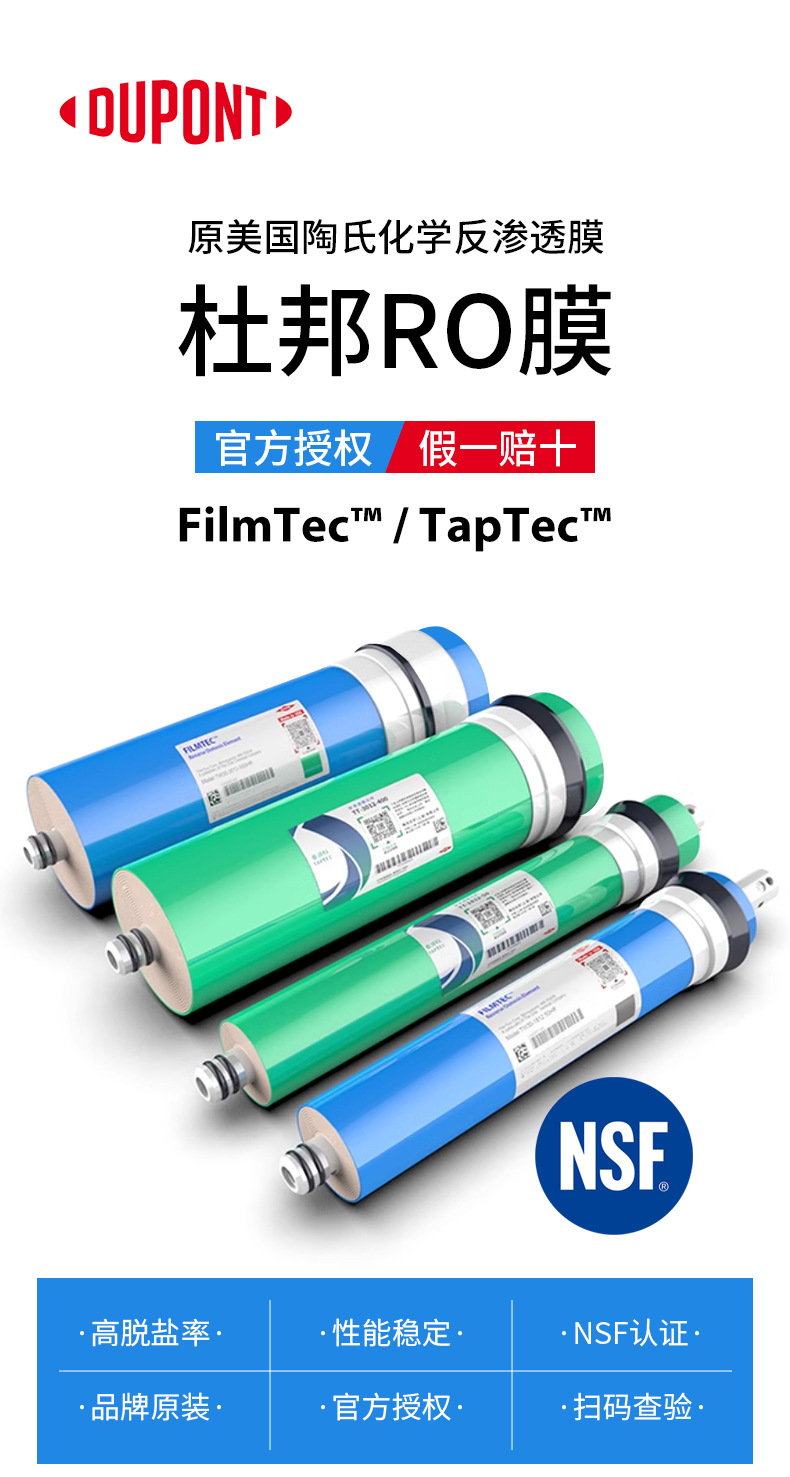 米国デュポン陶氏ro膜泰逆巻き科75G400G800G逆浸透膜浄水器純水機エレメント
