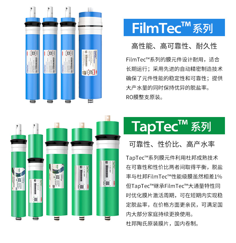 アメリカのデュポン・ダウ社RO膜、タイパコ社家庭用逆浸透膜浄水器純水機フィルターエレメント純正ブランド部品