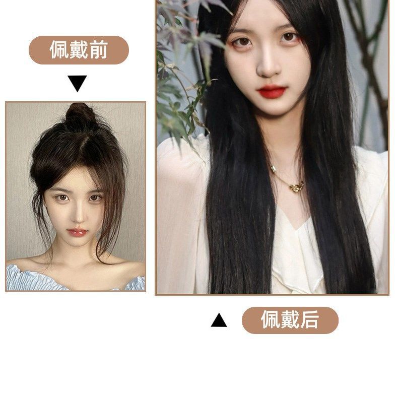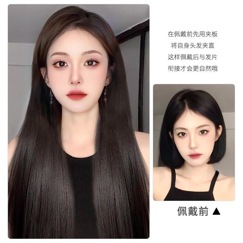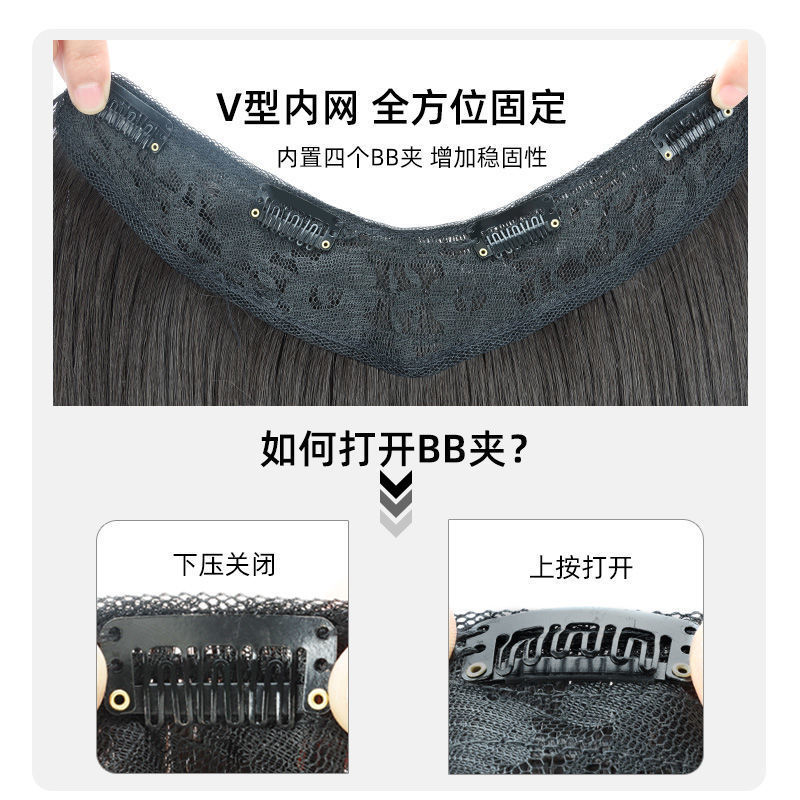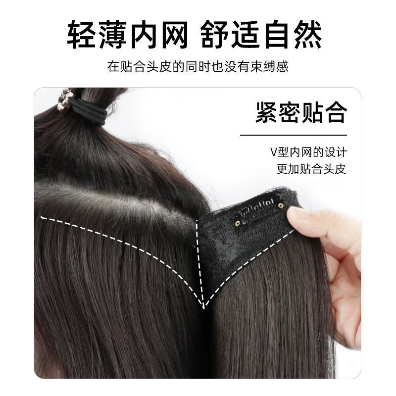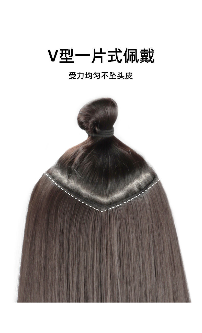 かつらの女性はまっすぐに一枚のv型の髪の増加量を伸ばします。
