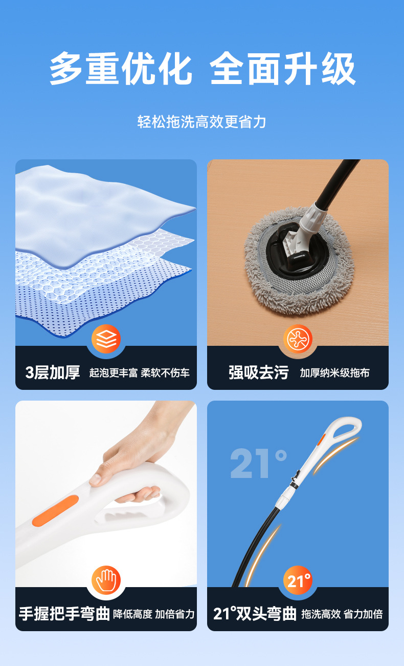 カラー ホワイト【2024新品グリップ洗车モップ】洗车に苦労しない,ホワイト2点セット【握りモップ予備ブラシヘッド】