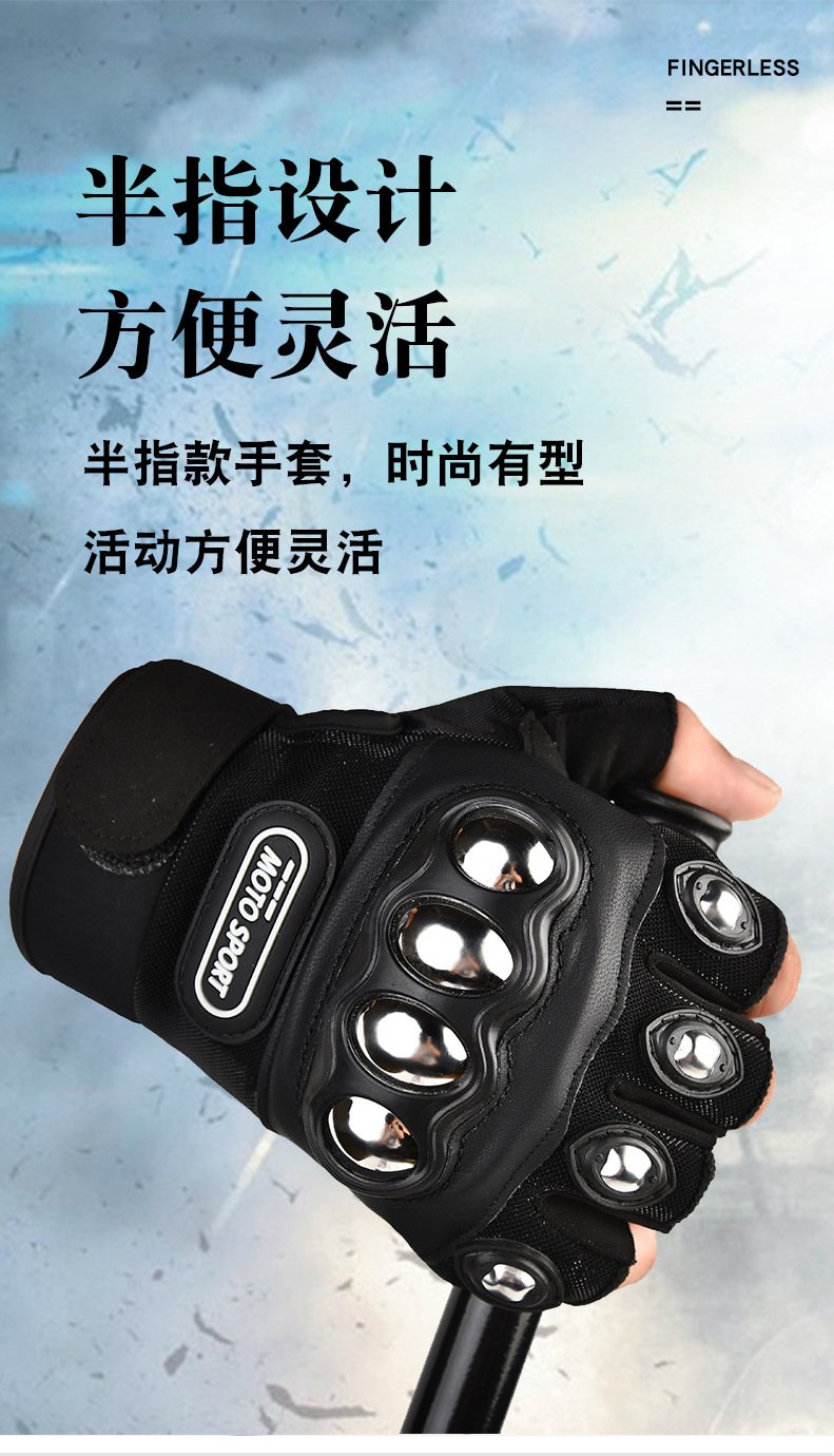 夏季半指摩托车手套骑行半指透气机车赛车耐磨防滑防摔机车手套男