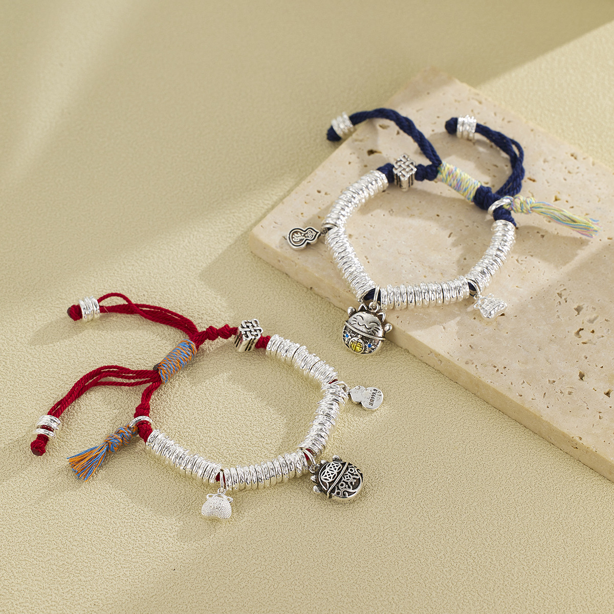 新しい中国式の爆発的な古風はブレスレットのブレスレットの国潮の平安ロックの流蘇を畳んで引き出して調整することができます。