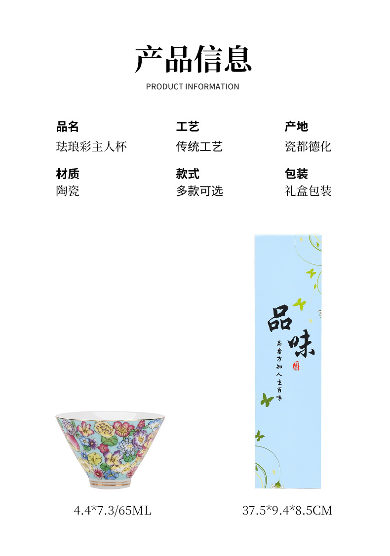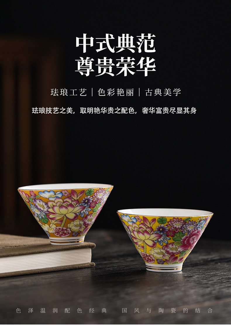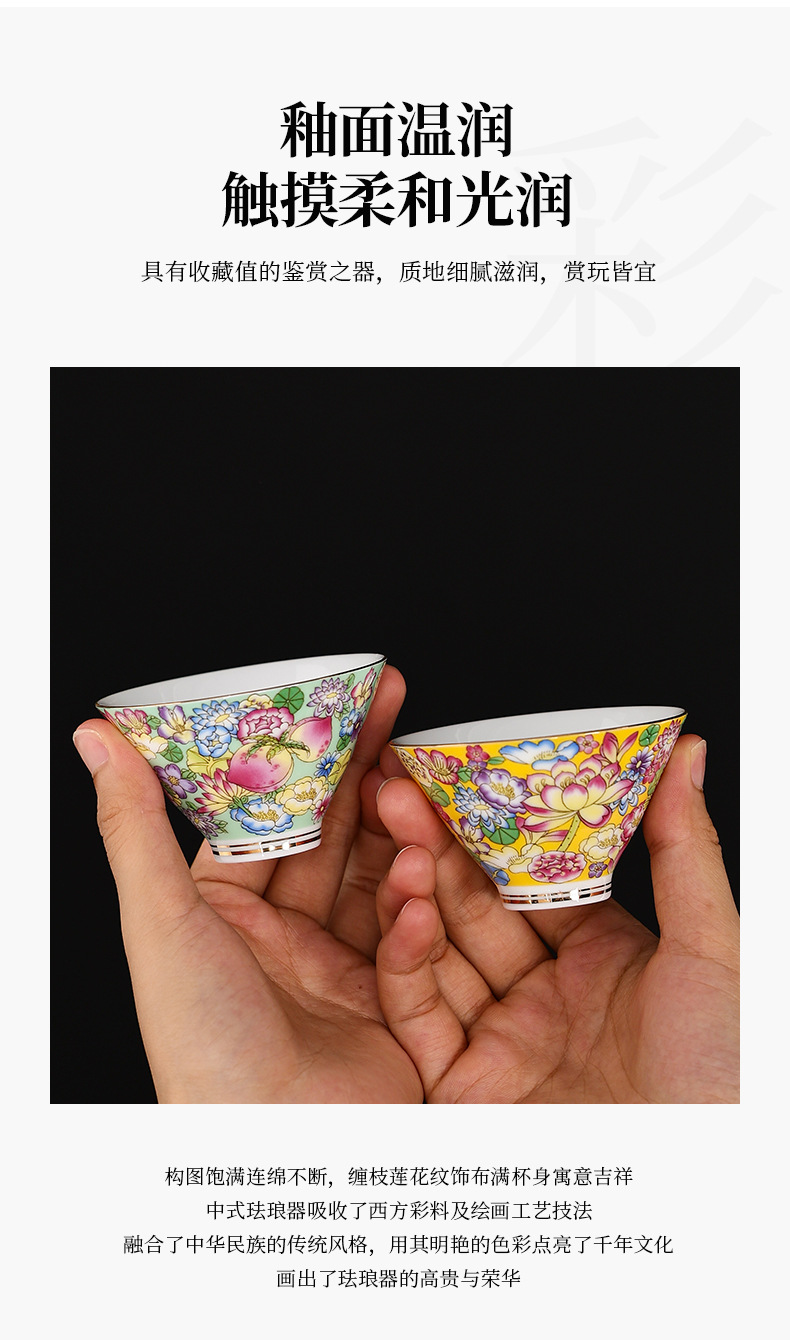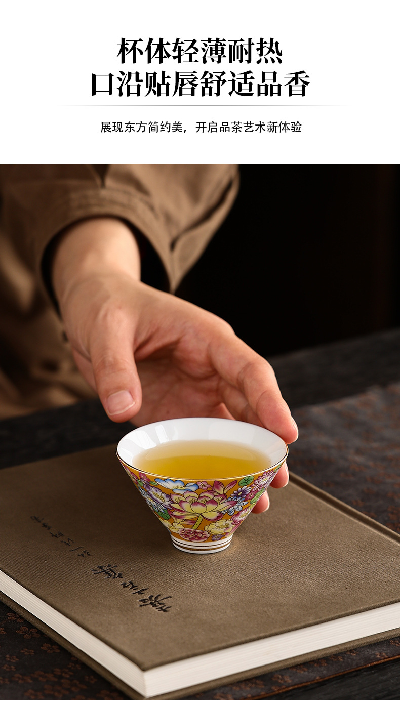 エナメルカラー主人杯品茗杯単杯泡杯お茶杯家庭用陶磁器工夫茶器プレゼント