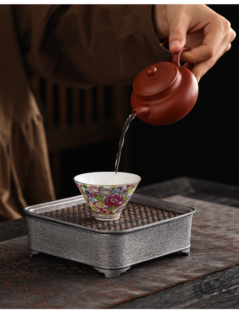 逸品の茶器のエナメルの茶の杯の闘笠の杯は花のコップの茶碗をかき集めます。