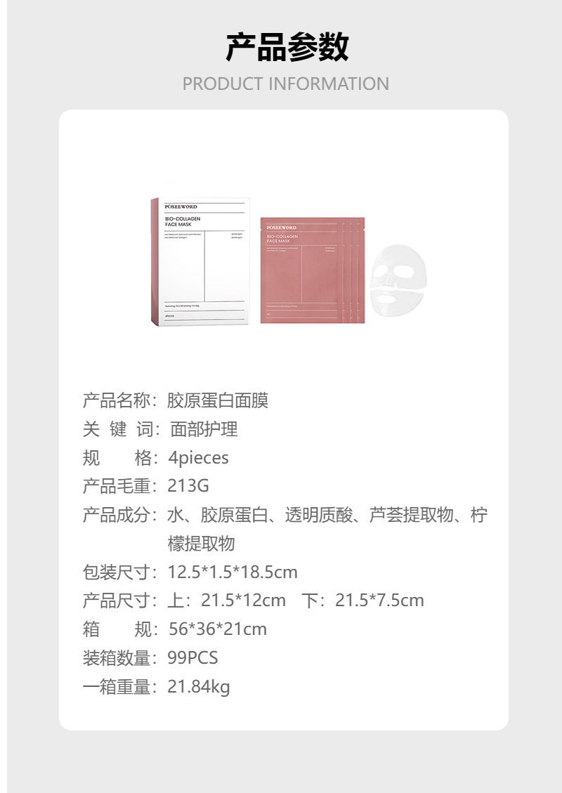 クロスボーダー専用コーゲンフェイシャルマスクコラーゲン水分補給マスク潤い保湿プルアップコンパクト