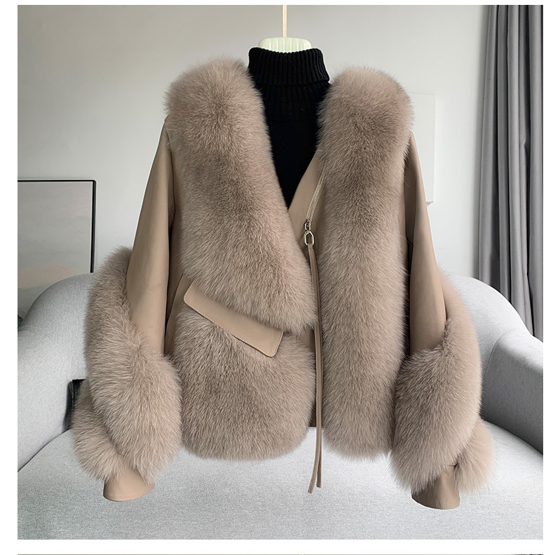 2025 新海寧シープスキンオートバイジャケット毛皮ワンピースコート冬キツネの毛皮のコート女性のショートスタイル
