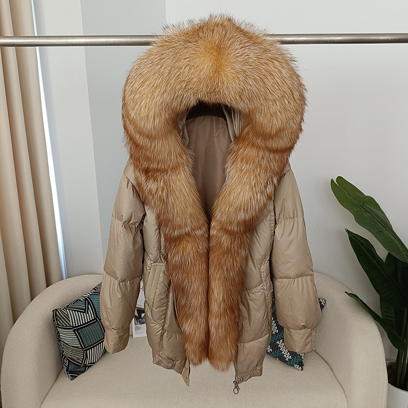 冬の新型女装超巨大キツネ毛襟毛皮コートは保温ファッションの中で長い帽子付きダウンジャケットを厚くした