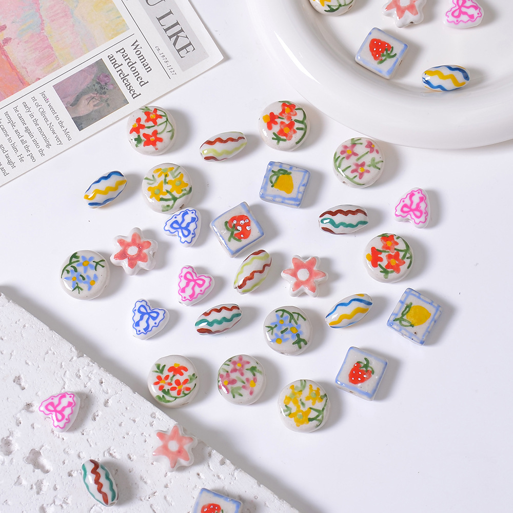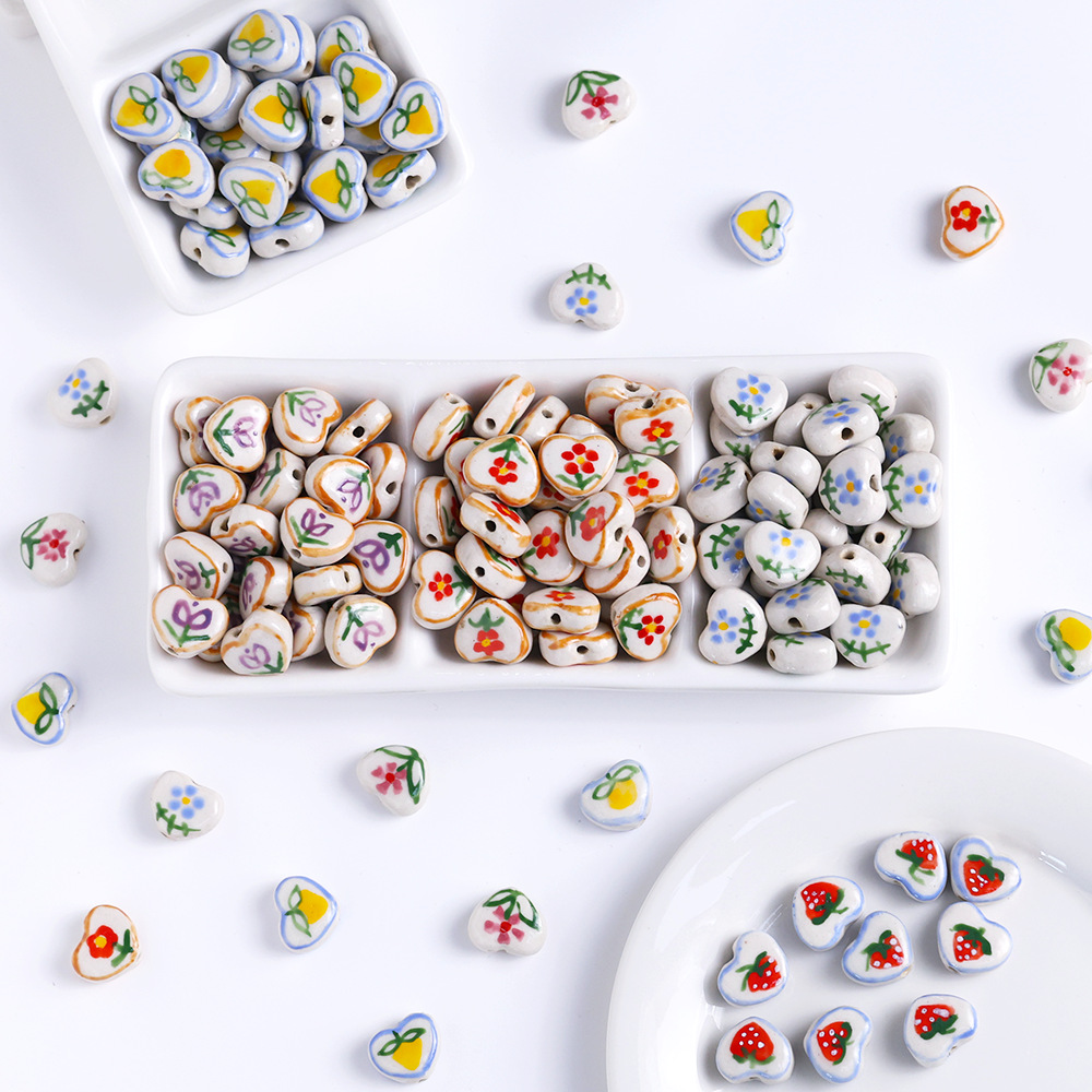ins风郁金香草莓手绘陶瓷花朵直孔串珠 手工DIY手链项链散珠材料