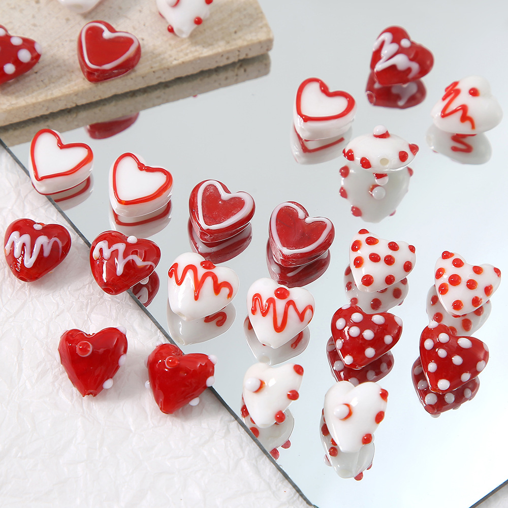 ins红色系琉璃波点爱心滴油散珠串珠手工diy材料项链手链手机链配