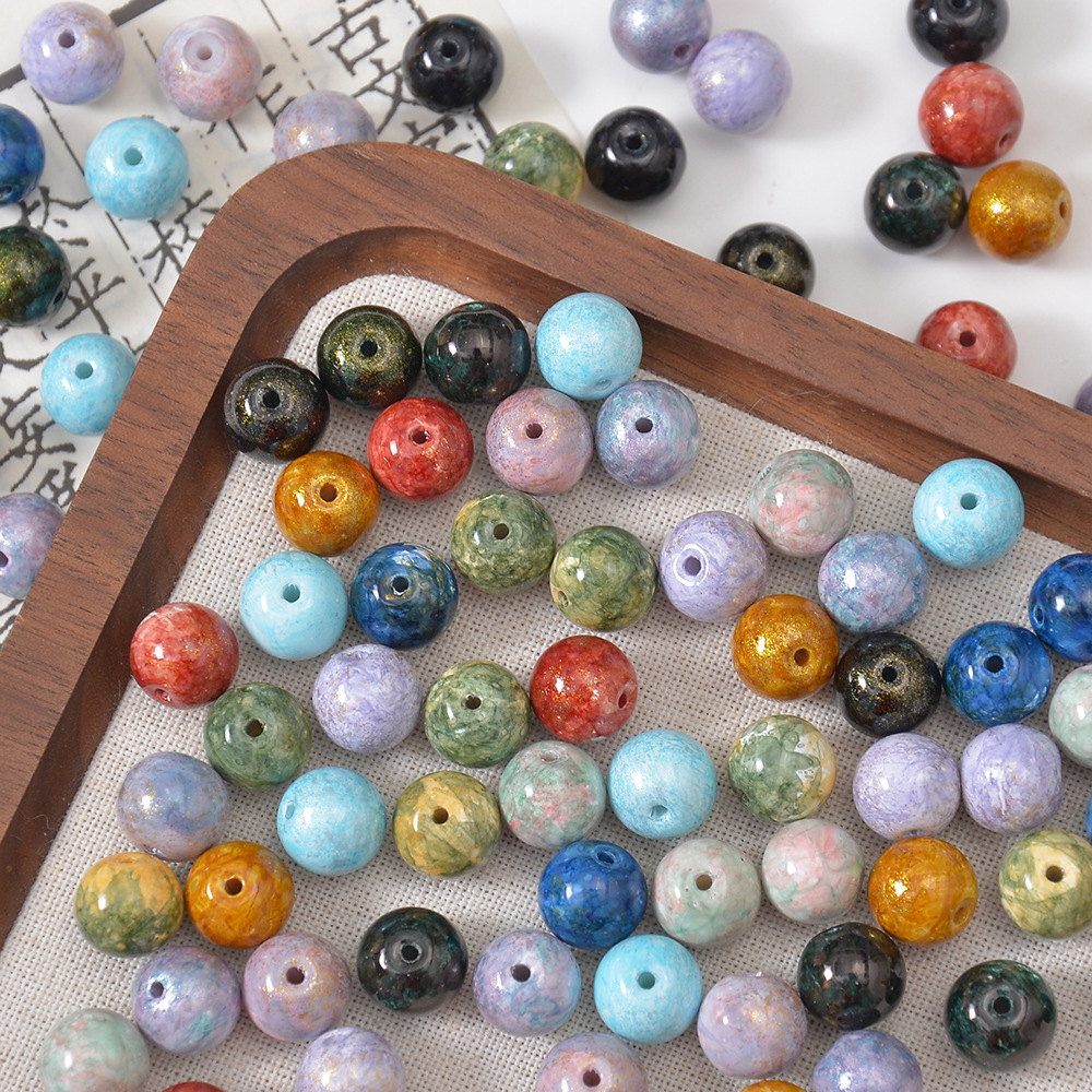 10mm釉薬彩陶磁器珠カラーぼかし散珠夏手作りネックレスブレスレットdiy円珠アクセサリー部品