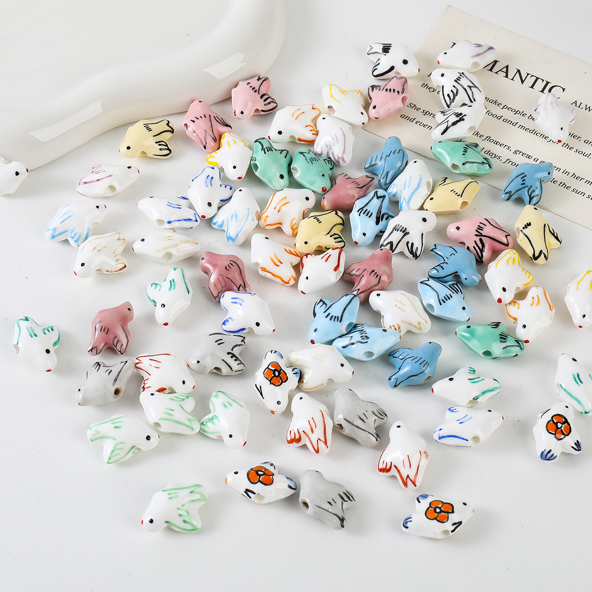 立体手绘鸽子陶瓷珠串珠 手工DIY手链项链饰品配件散珠材料手链珠