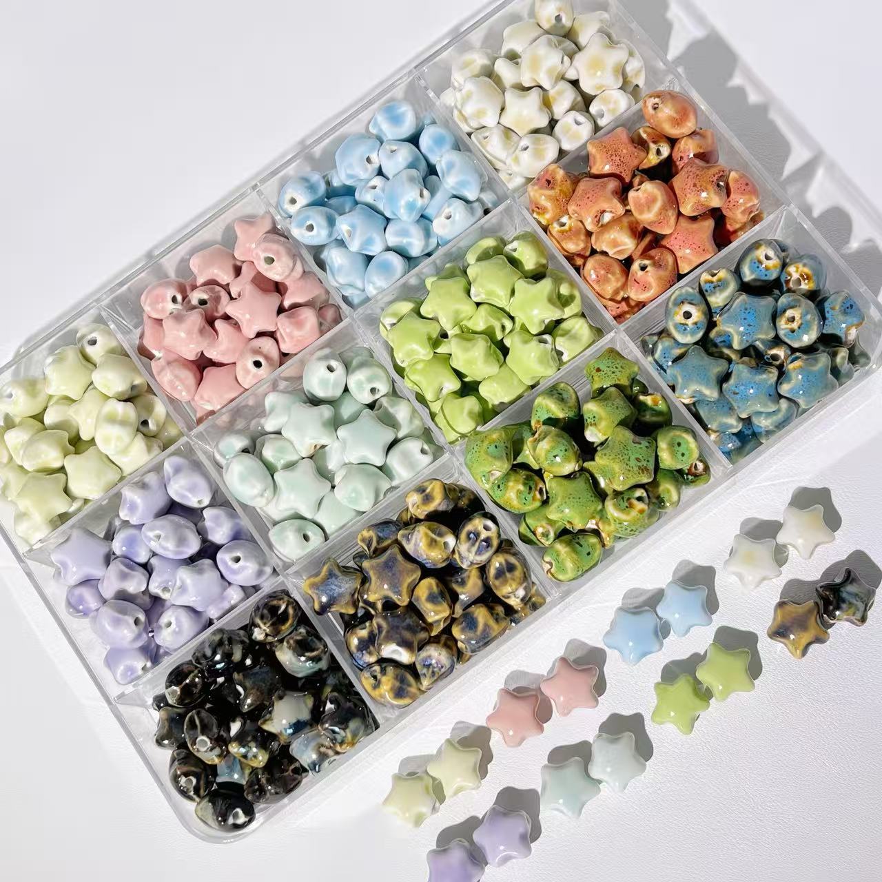 景德镇陶瓷散珠五角星复古新中式花釉陶瓷珠子DIY材料异型瓷珠