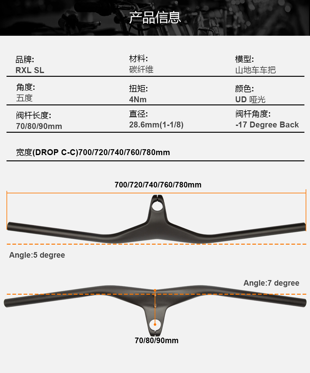 ロゴなしカーボンファイバー製マウンテンバイクハンドルバー-17度一体型ハンドルバー自転車アクセサリー改造オフロード用