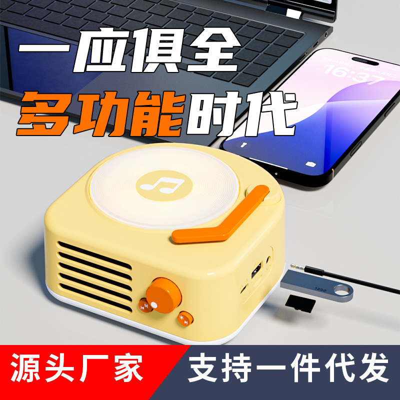万人ファン2025新品レトロ黒ゴムレコード機bluetoothスピーカー携帯型小音響プライベートモデルプレゼントかわいい