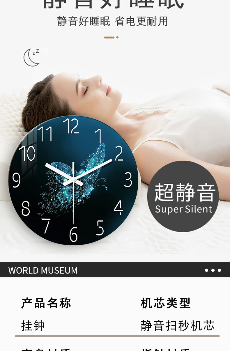 【12インチ30cm】越境創意歯強化ガラス掛け時計静音リビング時計壁掛け装飾