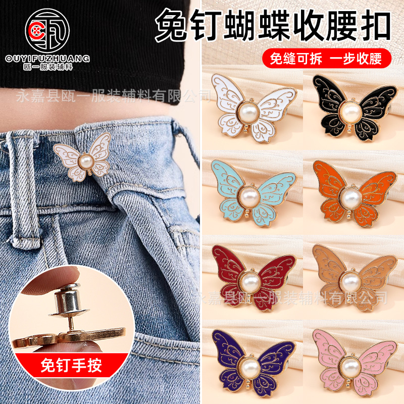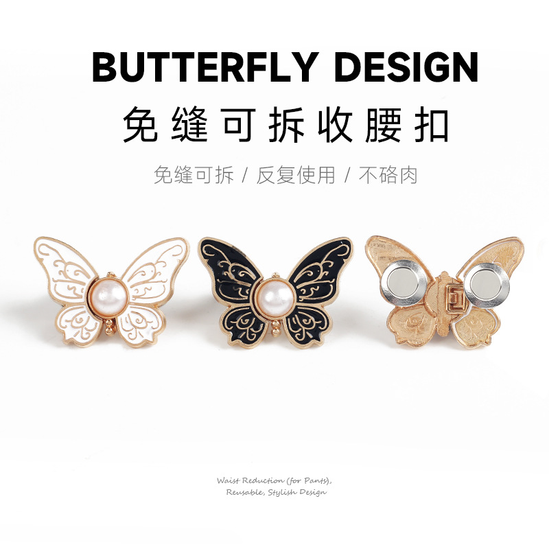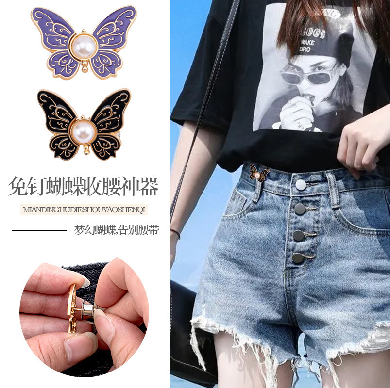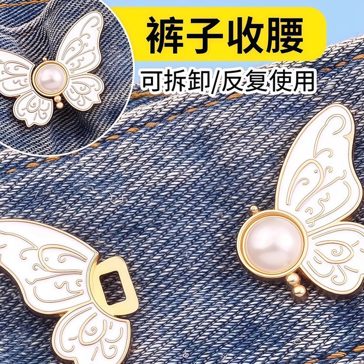 パールバタフライウエストボタンパンツ固定ウエストボタンジーンズスカートウエストサイズ変更小さなウエストアーティファクト