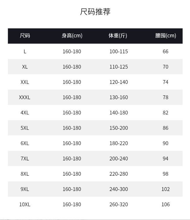 サイズ L,XL,2XL,3XL,4XL,5XL,6XL,7XL,8XL,9XL,10XL