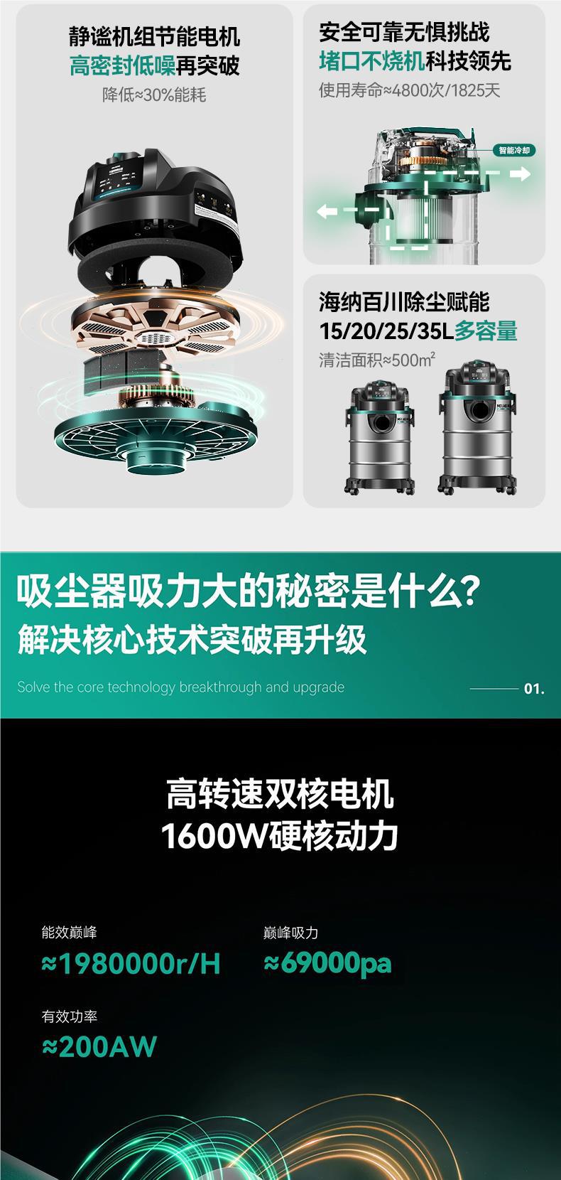 美菱掃除機家庭用大吸引力オープン荒美縫超強力パワー洗車専用商用工業集塵機
